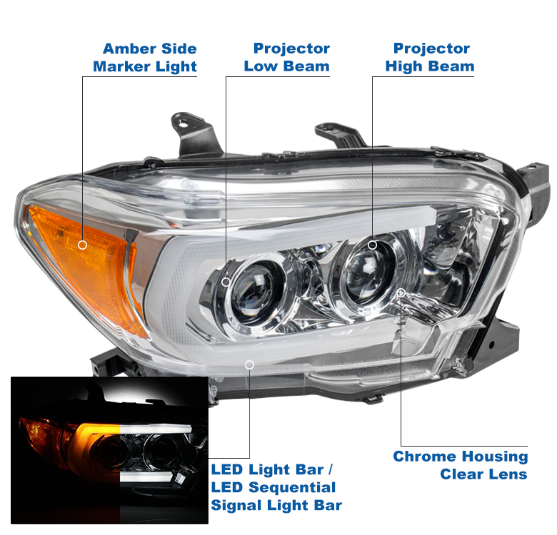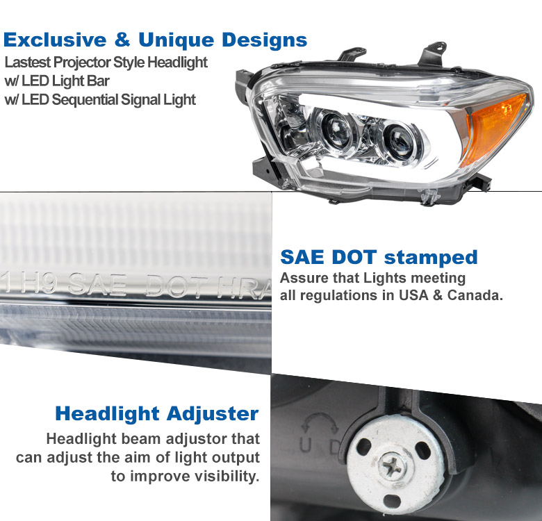 | Fitment | Compatible with 2016-2022 Toyota Tacoma Limited | TRD *Fit models with factory LED DRL halogen headlights only **For 2020-2022 Tacoma, do not fit models with factory full LED headlights |