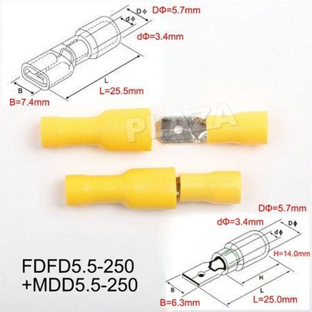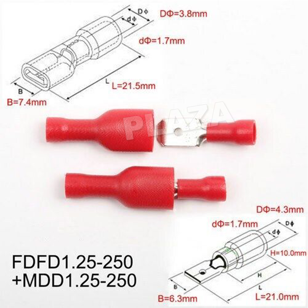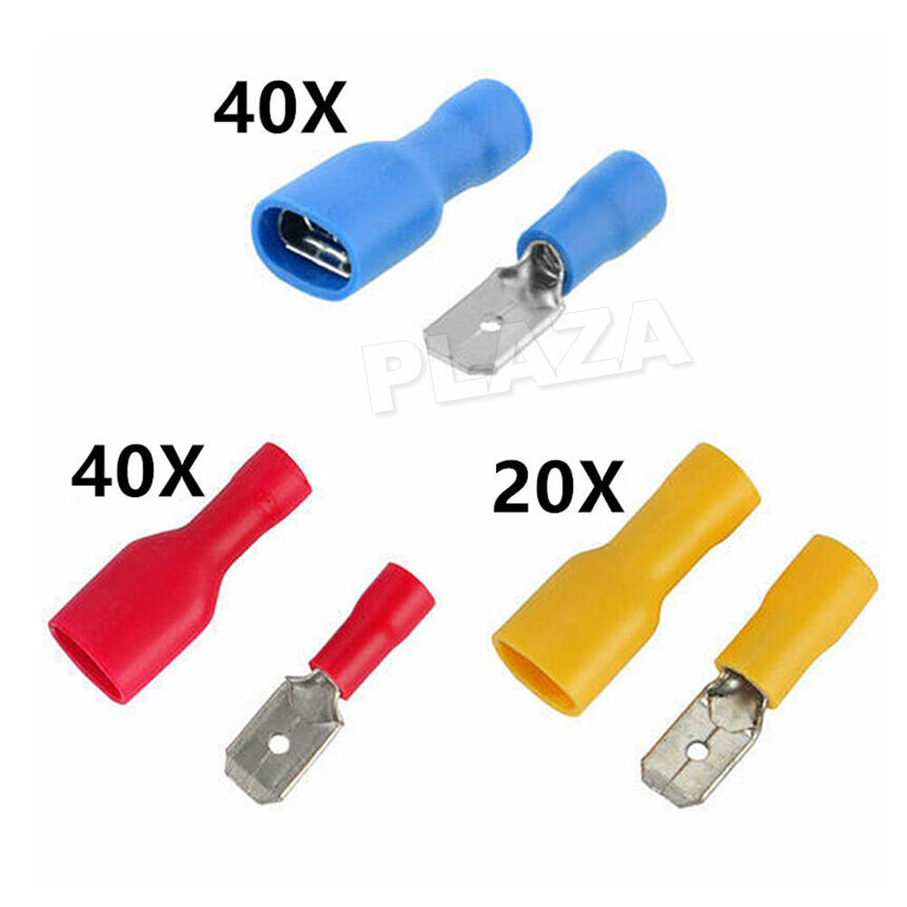 100PCS(20Yellow+40Blue+40Red) Spade Connectors (50 male and 50 female)