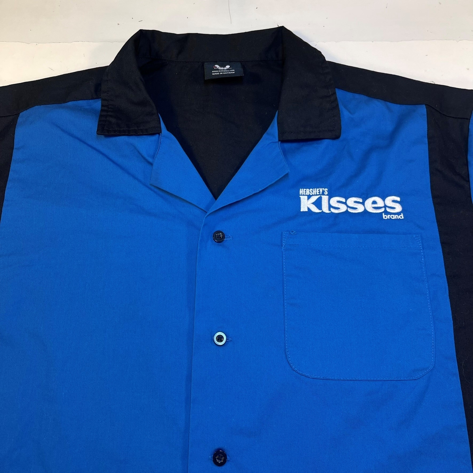 HERSEY'S KISSES CHOCOLATE CANDY HILTON BOWLING SHIRT Mens L Blue & Black