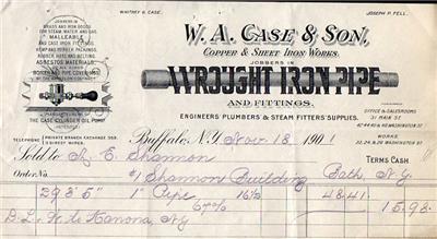 Company: W. A. CASE & SON - COPPER & SHEET IRON WORKS - WROUGHT IRON PIPE & FITTINGS