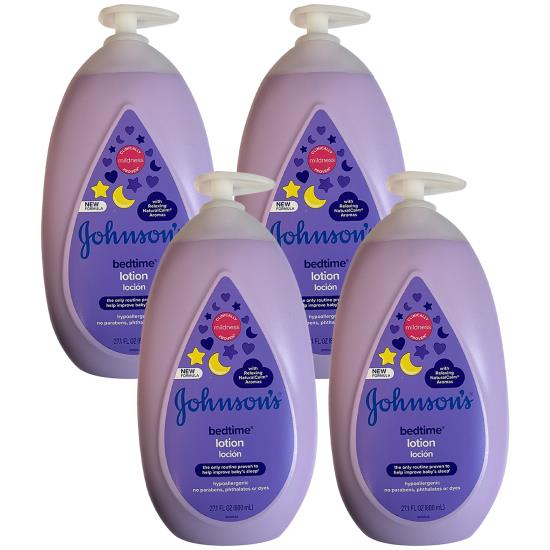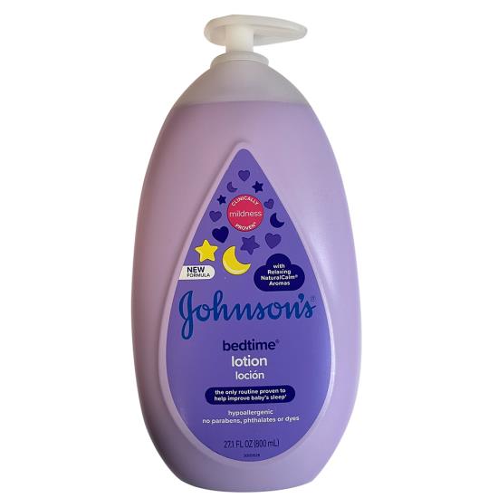 - 27.1-fluid ounces of Johnson's Moisturizing Bedtime baby lotion with a new formula featuring special relaxing aromatic blend that helps to soothe your baby and leave your little one's skin feeling touchably soft, smooth and nourished