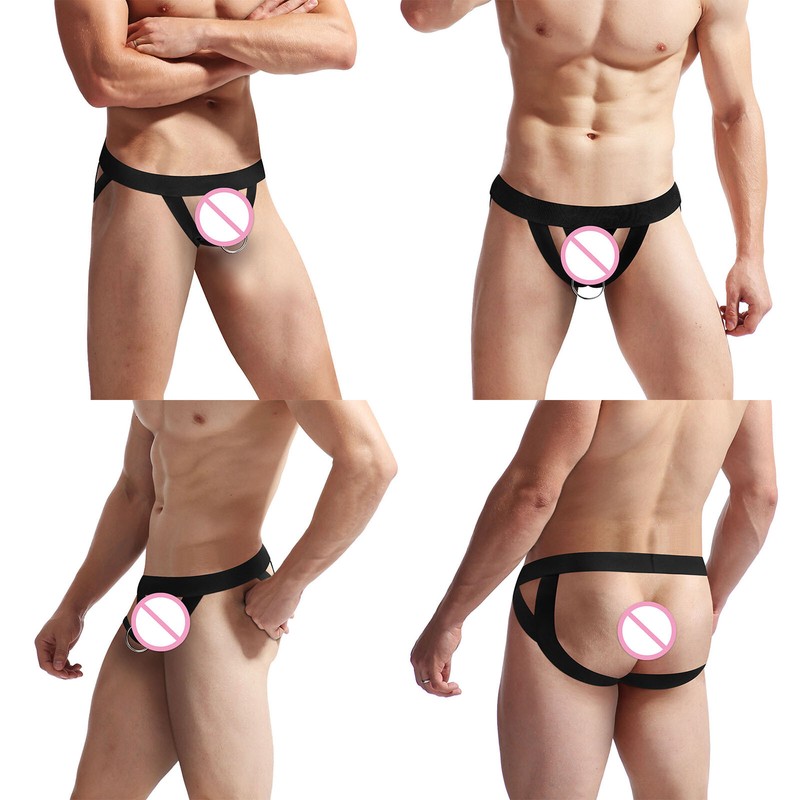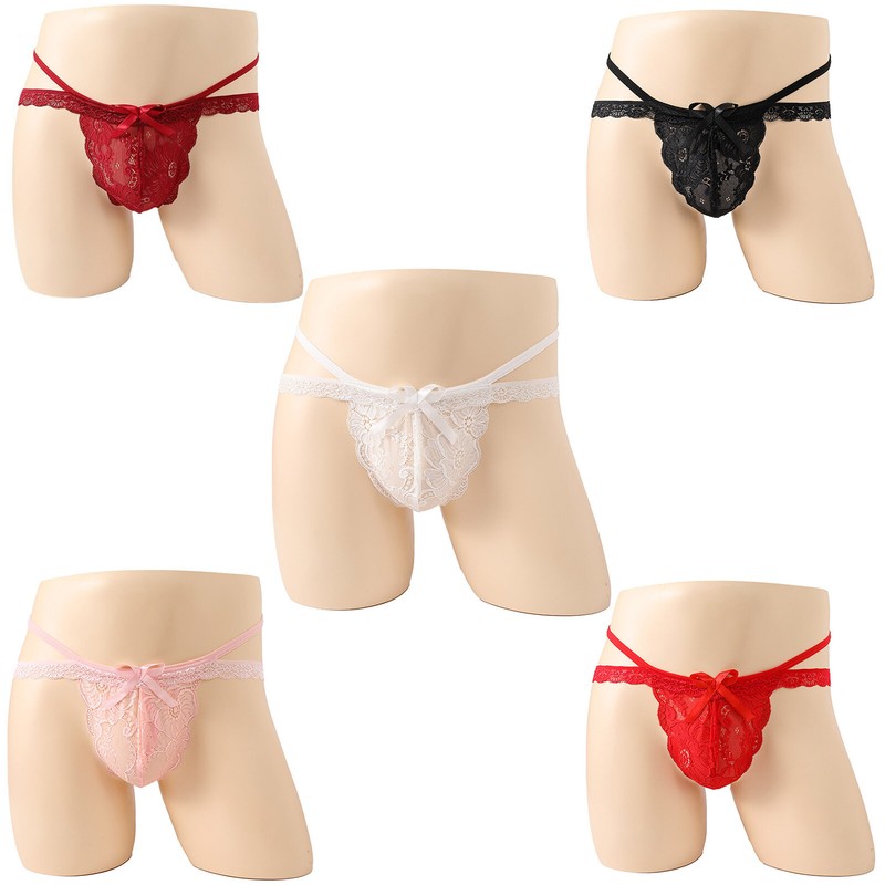 Mens See-Through Lace Briefs Bowknot Strappy Crotchless Underpants.