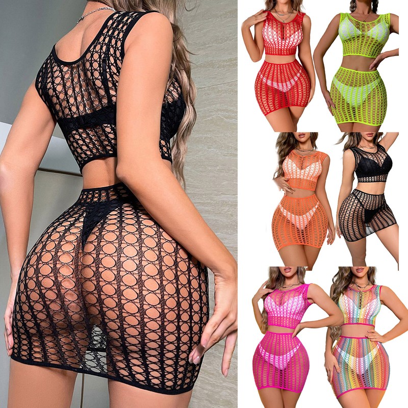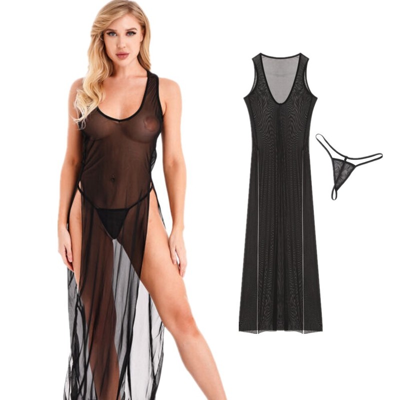 See-through sheer mesh design with spaghetti shoulder straps, deep u neck and backless, solid color, pull on closure.