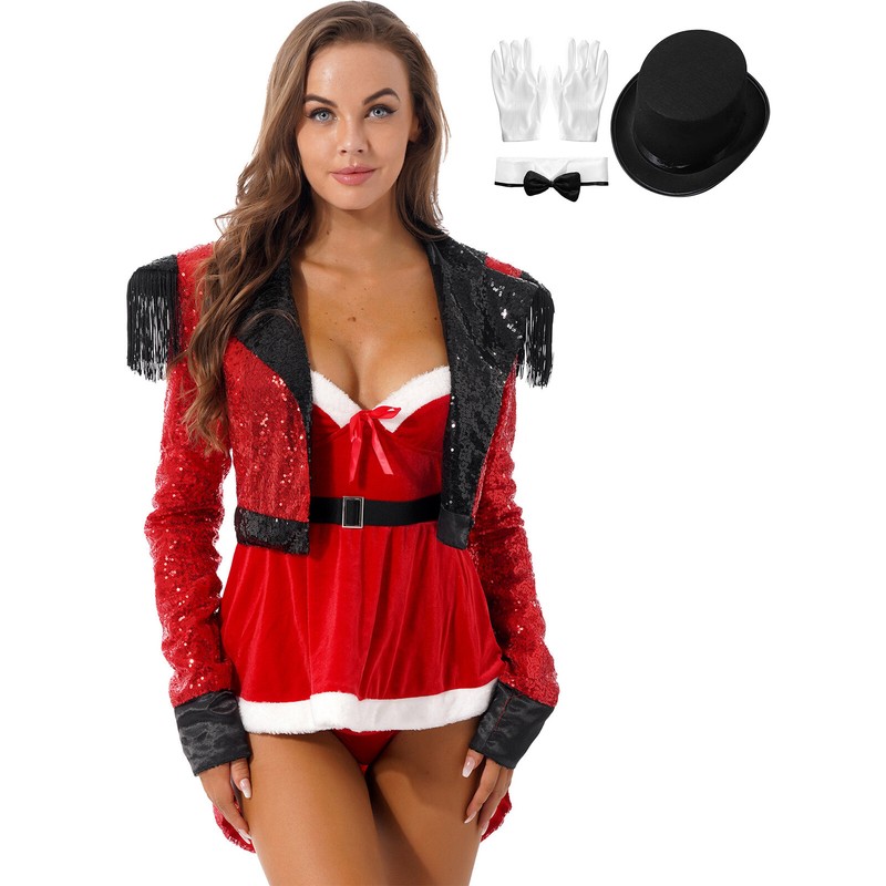 Matching props with top hat, bow collar and gloves, bringing more highlights to the party outfit. Fake collar and gloves are silky to wear.