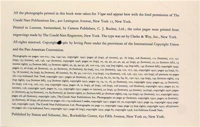 Irving Penn (June 16, 1917 – October 7, 2009) was an American photographer known for his fashion photography, portraits, and still lifes. Penn's career included work at Vogue magazine, and independent advertising work for clients including Issey Miyake, and Clinique. His work has been exhibited internationally, and continues to inform the art of photography.
