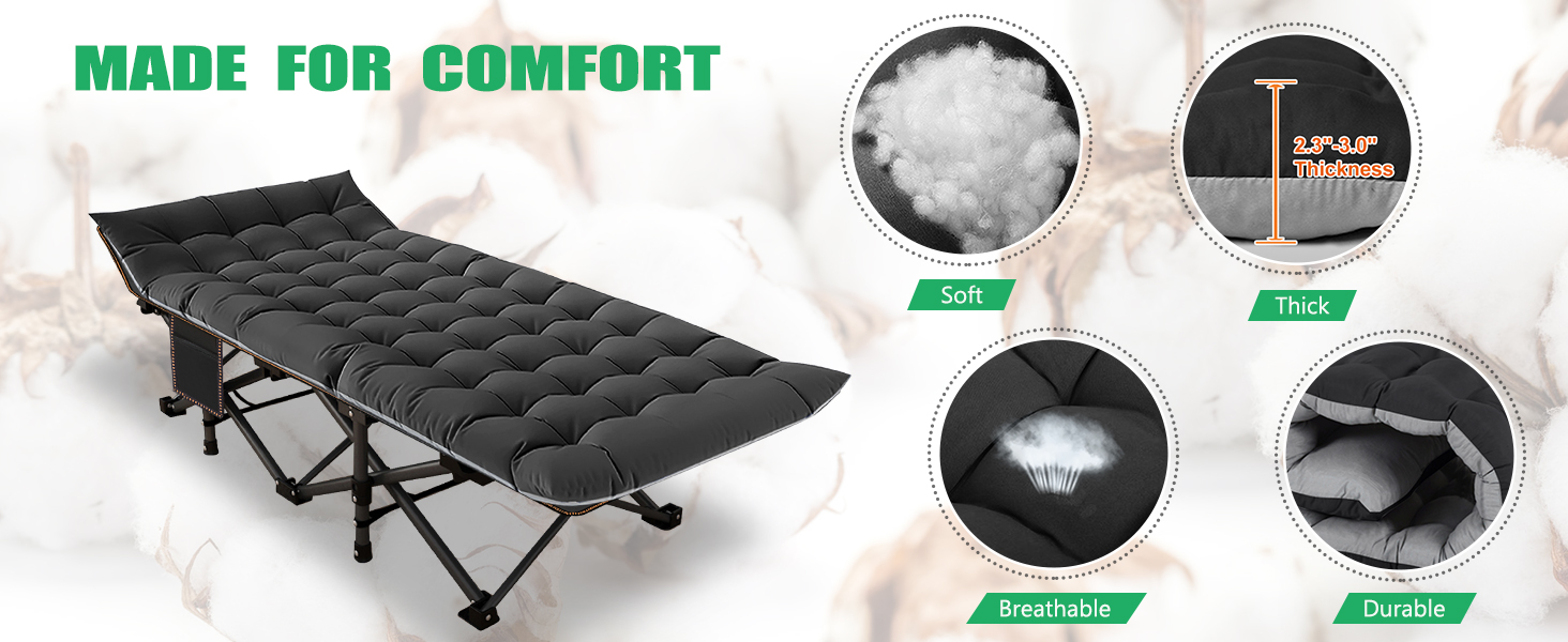 COMFORTABLE MATTRESS - Equipped with mattress, you can sleep more comfortably in this portable folding camping bed; don't hesitate anymore, hurry up and place your order;