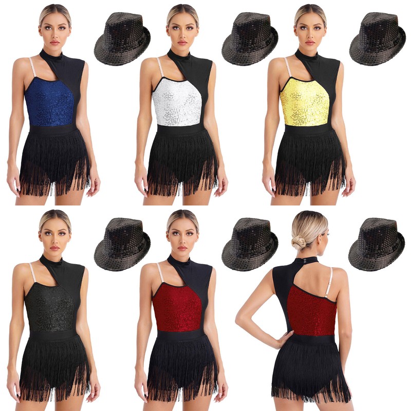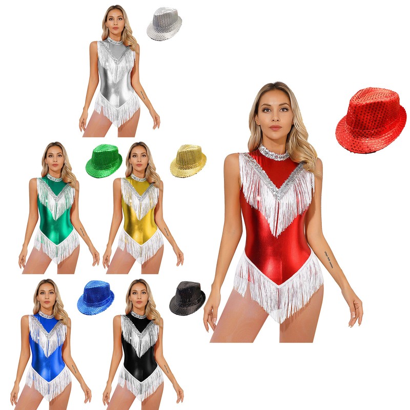 Women’s metallic tassel leotard with sequins that sparkle under the light to brighten up any performance.