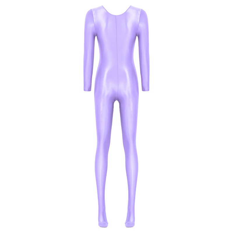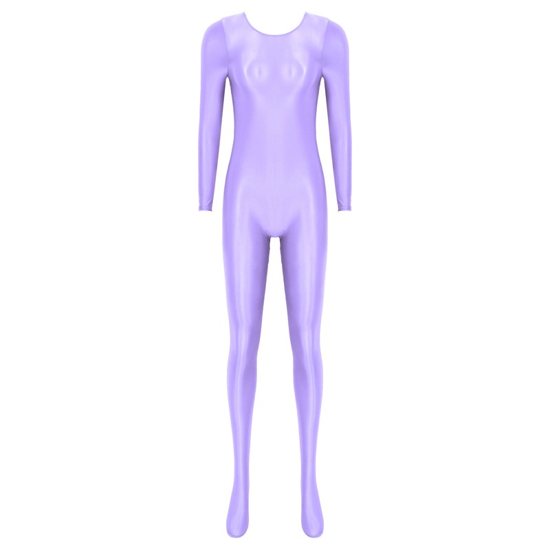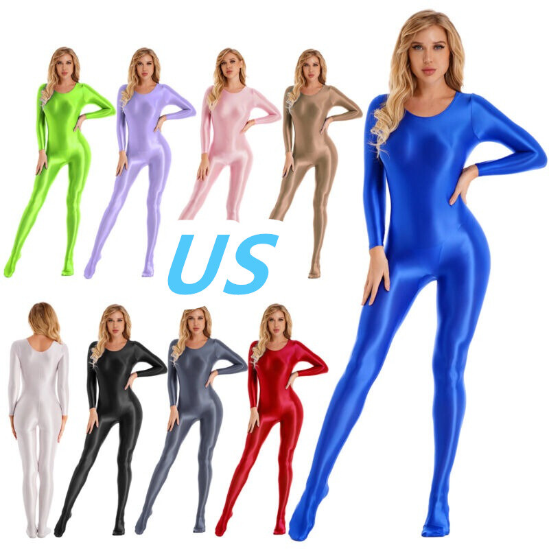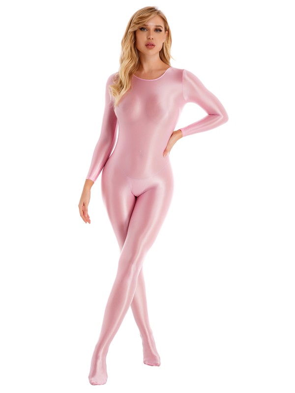 Womens Long Sleeve Bodystocking Solid Color Round Neck Bodysuit.