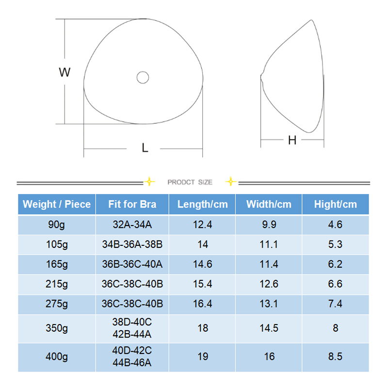 Medical-grade Silicone: made of light-weight silicone, makes it possible for the artificial breasts to be real, natural and lighter, ultra soft and harmless, has elastic sense of touch, quickly regain their shape after fondling.