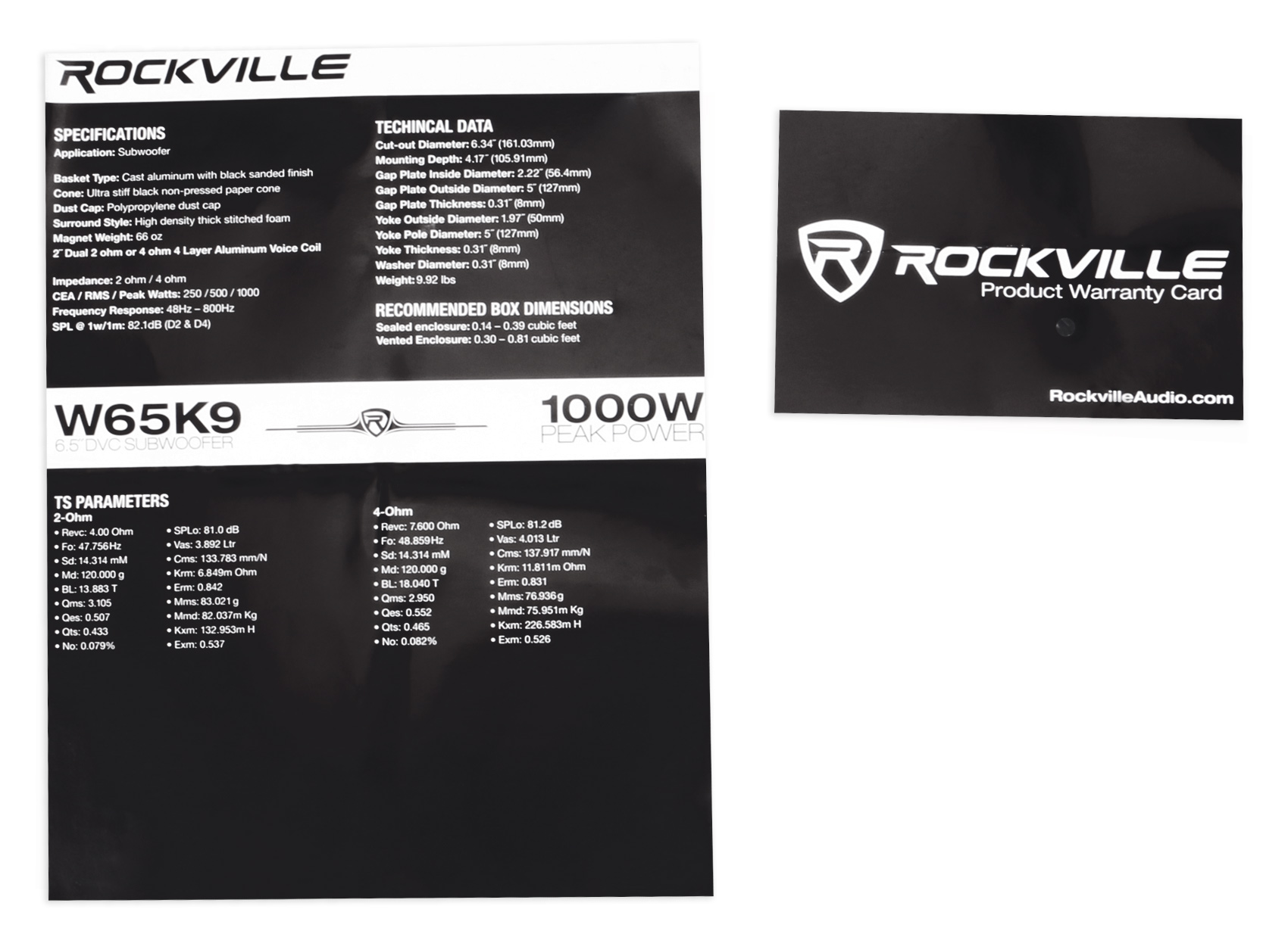 - Rockville W65K9D2 K9 Series 6.5" Dual 2-Ohm Car Subwoofer