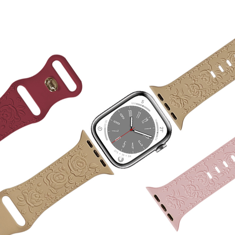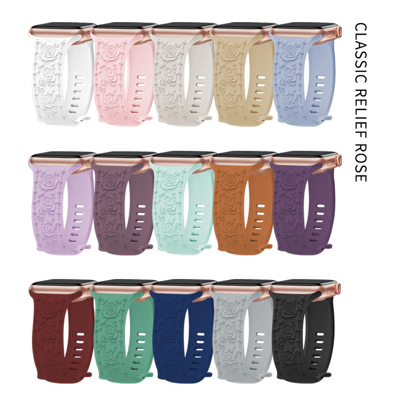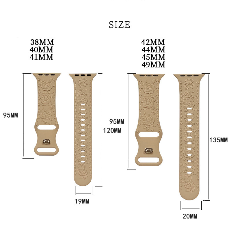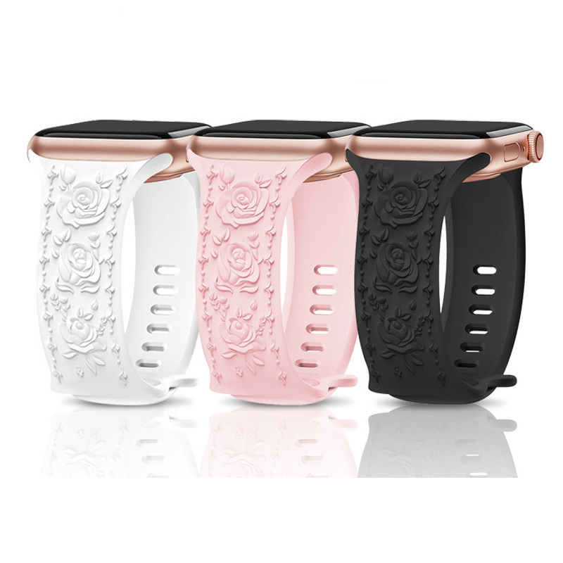 Our flower laser pattern engraved silicone for iwatch bands compatible with Apple Watch 38mm 40mm 41mm 42mm 44mm 45mm 49mm, suitable for Apple Watch iWatch Sreis 9, Series Ultra 2,Series 8, Series Ultra,Series 7, Series 6, Series 5, Series 4, Series 3, Series 2, Series 1, SE .