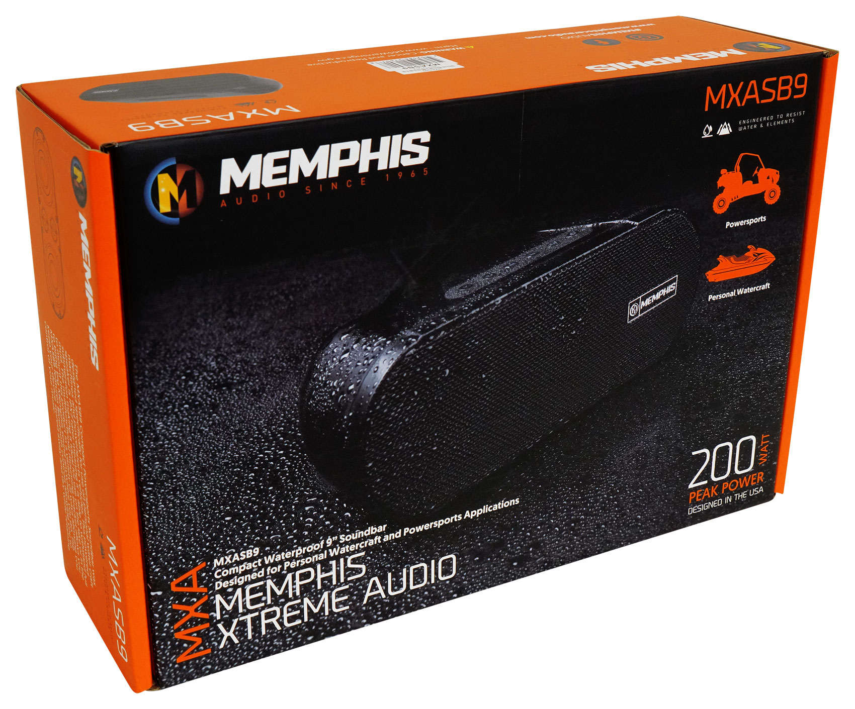 The MXASB9 Compact Powersports Soundbar was designed specifically for use on personal watercraft machines and powersports vehicles.This powered speaker is IPX7 rated meaning it is able to withstand full submersion making it ideal use on the lake or in the mud. The multi-functional mounting bracket provides multiple mounting options allowing you to bring big Memphis sound anywhere you go. The MXASB9 features Bluetooth controls permitting you to store your device in a dry bag while retaining control of your music.