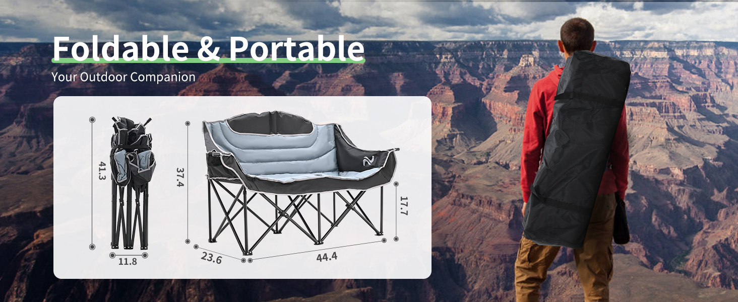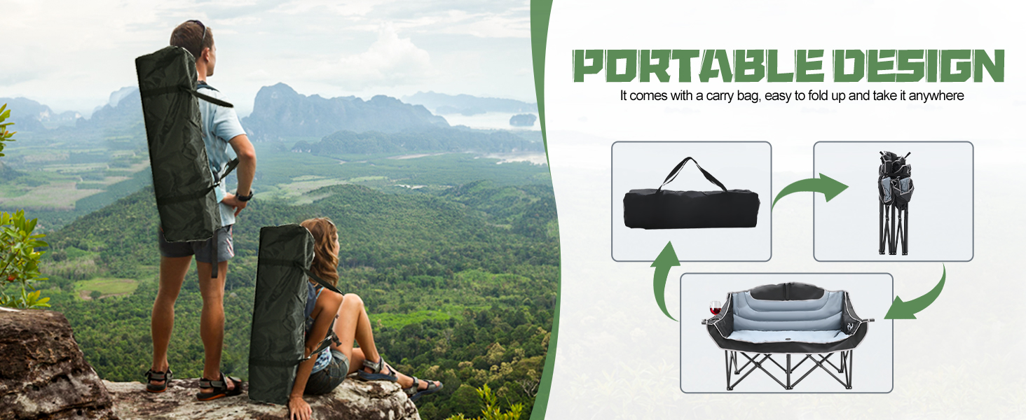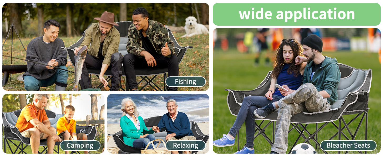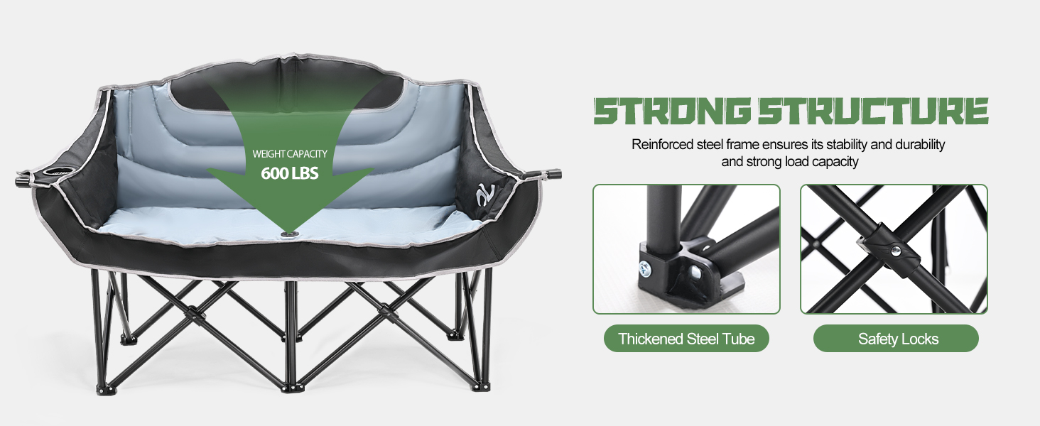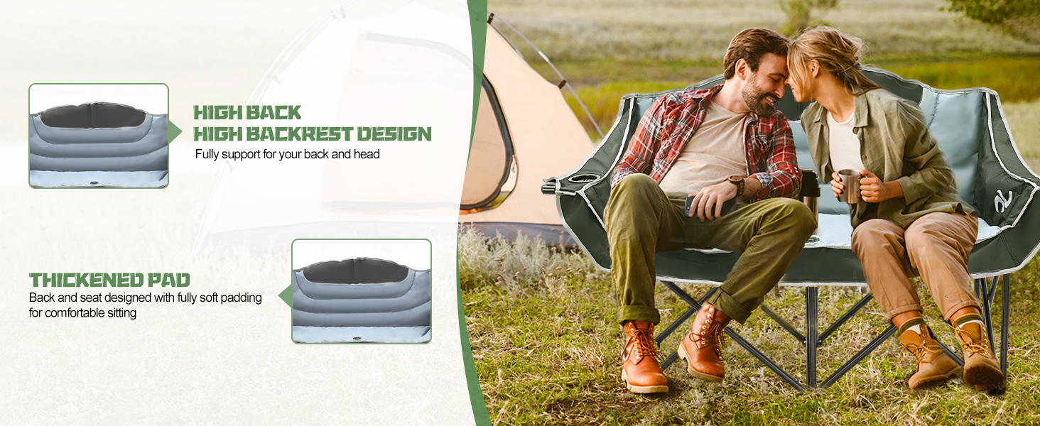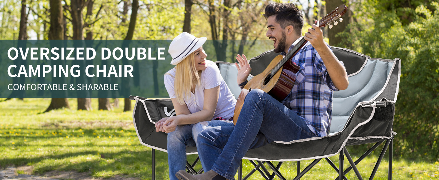 Camping Chair Double Folding Chair HeavyDuty Loveseat Camp Chair 2 Person 990lb