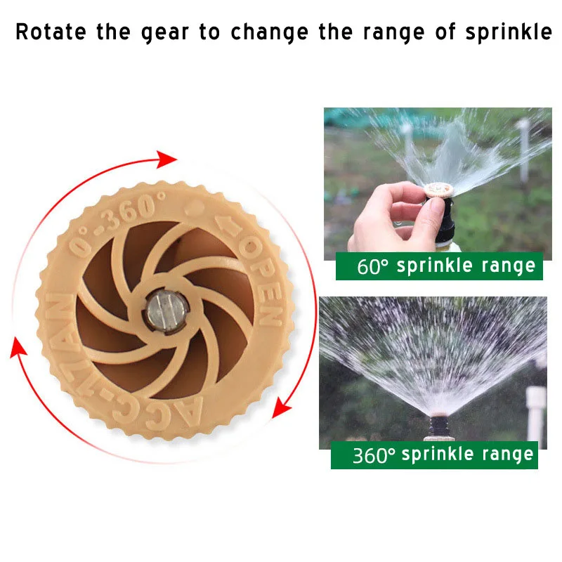 Insert in Lawn 360 DG Rotating Automatic Sprinkler Nozzle Yard Watering Garden Plant Sprayer Cooling Water Spray Irrigation Tool Brand new sprinkler, made of high qualtiy PP material. Insert in to ground, rotate the gear to change the range of sprinkle.