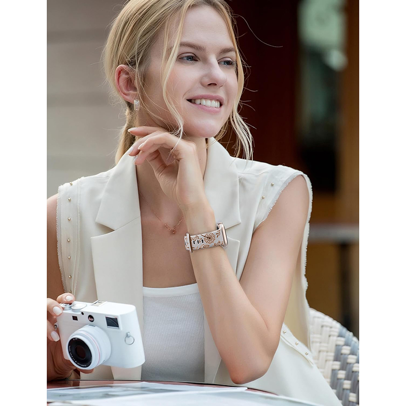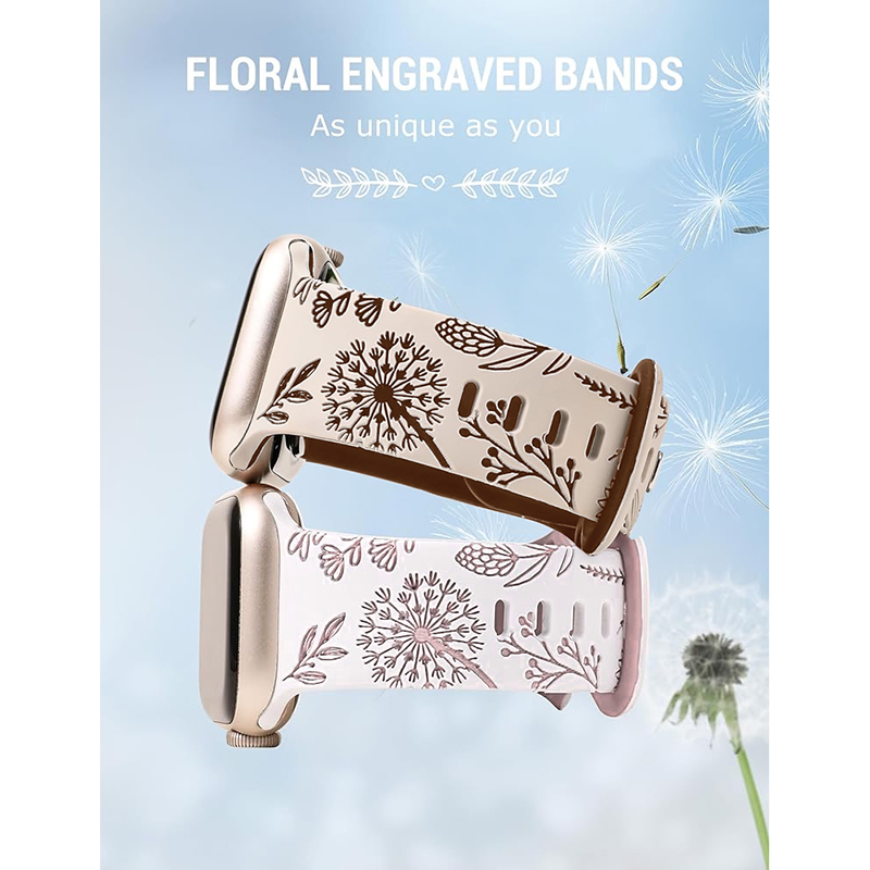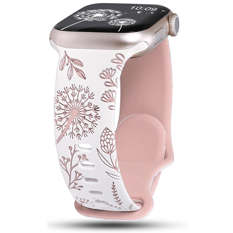 floral engraved for apple watch bands for women designed by French designer,blended with French romance,cute,gorgeous and beautiful,patterns:butterflies, wildflowers, sunflowers.All of them are popular element of the season,suitable for all stylish women, girls and ladies.