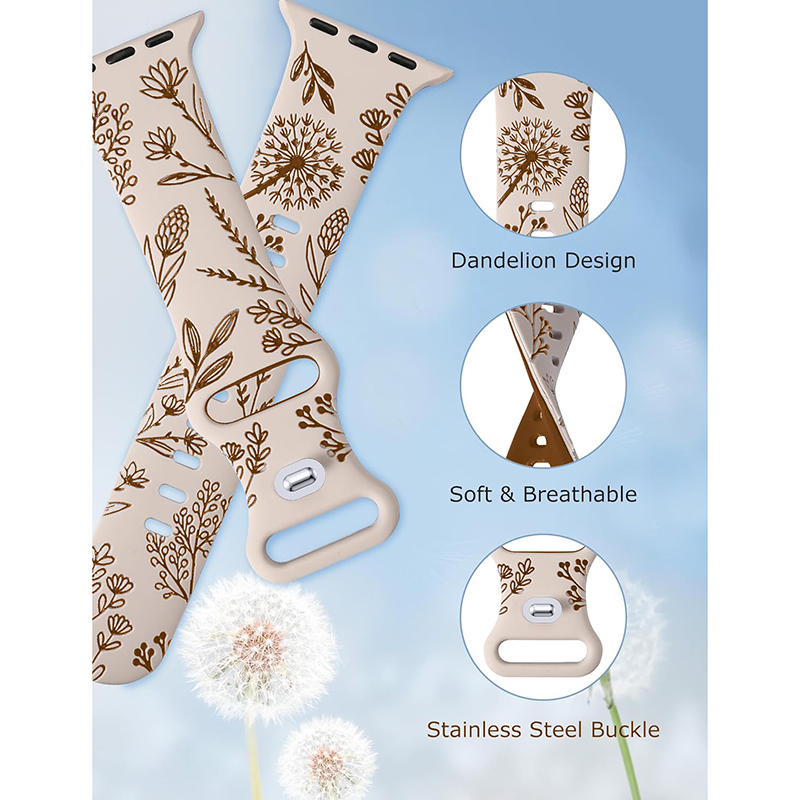 Our flower laser pattern engraved silicone for iwatch bands compatible with Apple Watch 38mm 40mm 41mm 42mm 44mm 45mm 49mm, suitable for Apple Watch iWatch Sreis 9, Series Ultra 2,Series 8, Series Ultra,Series 7, Series 6, Series 5, Series 4, Series 3, Series 2, Series 1, SE .