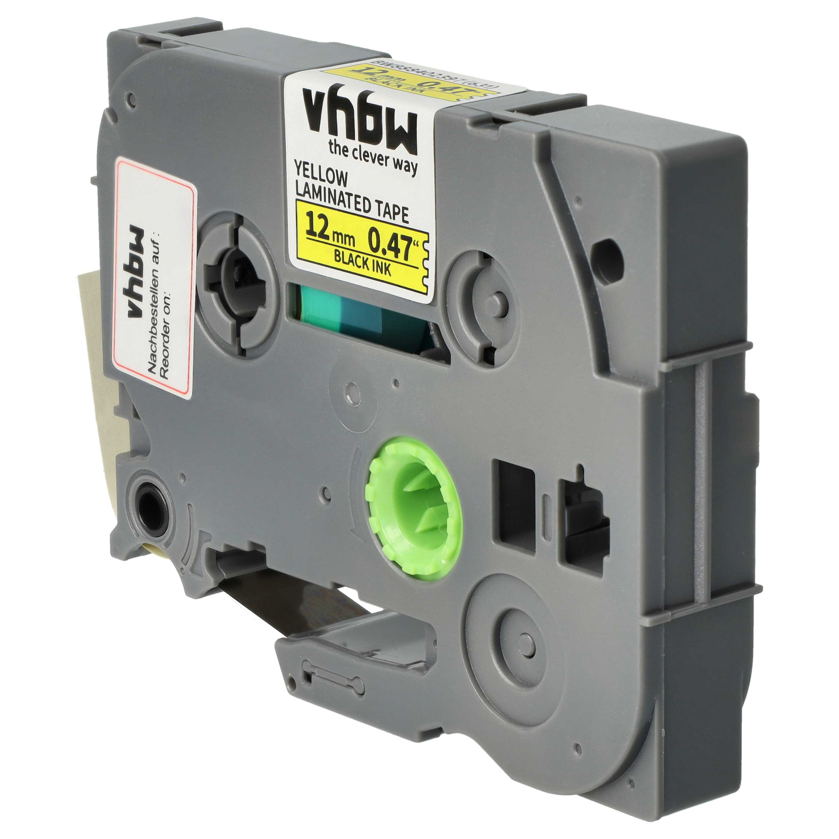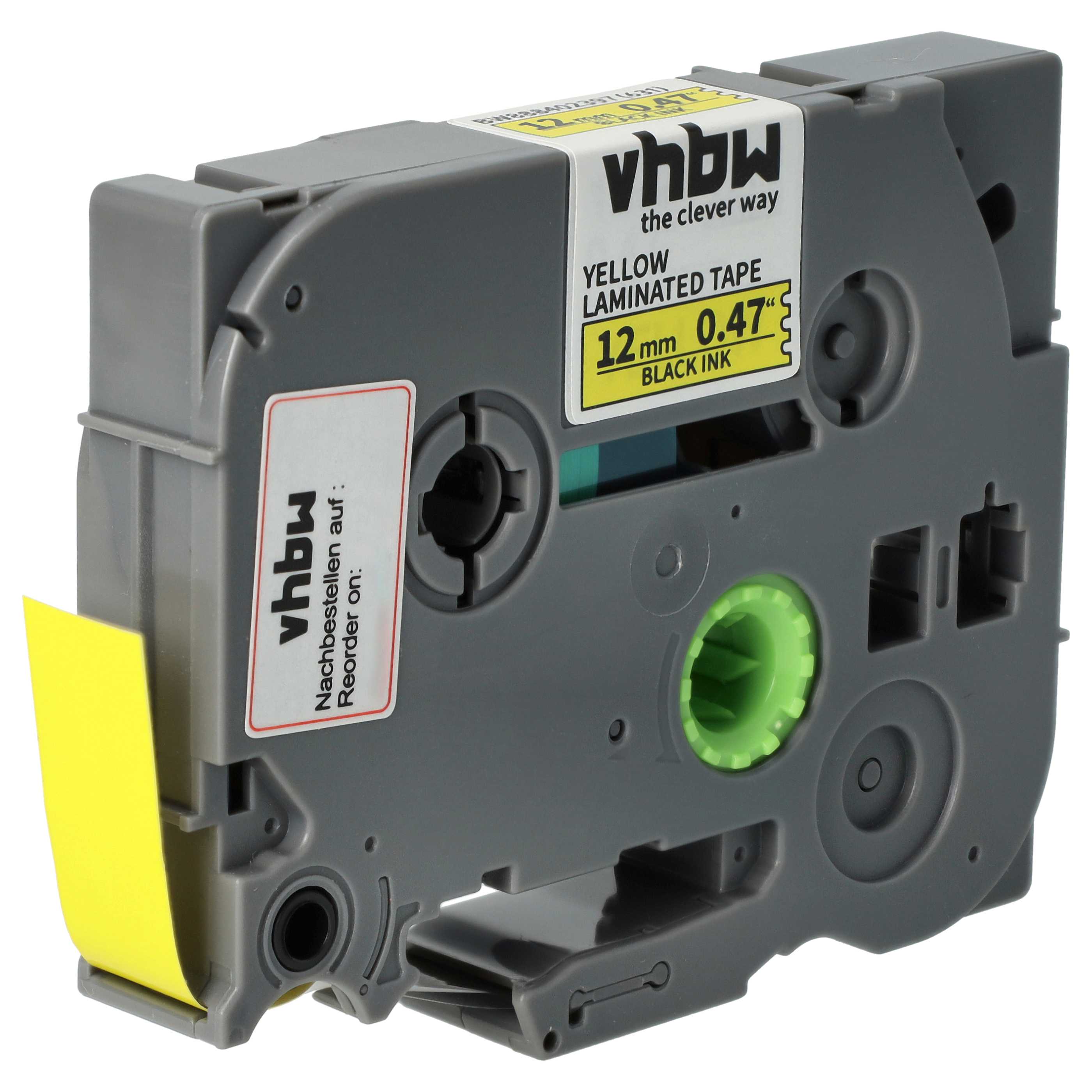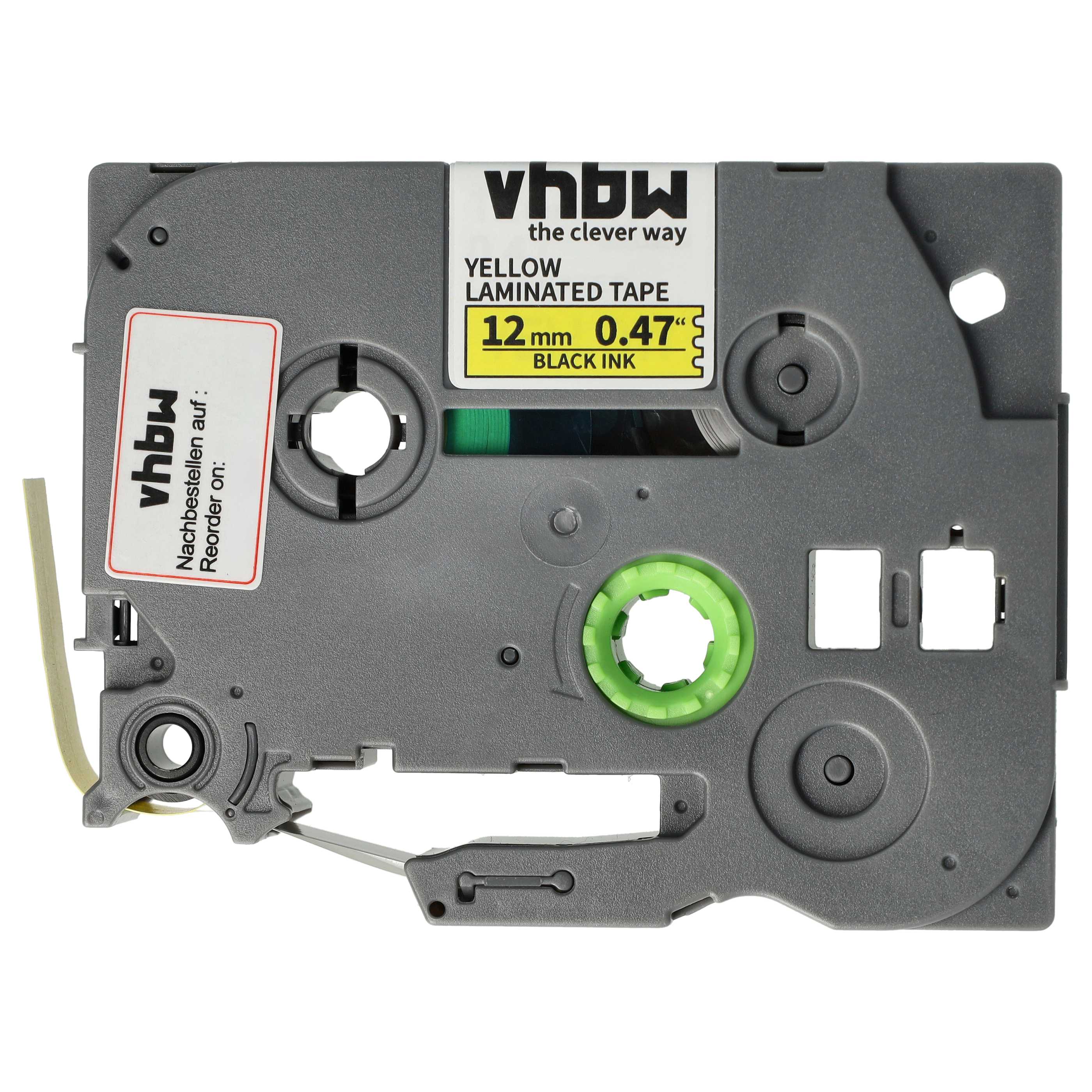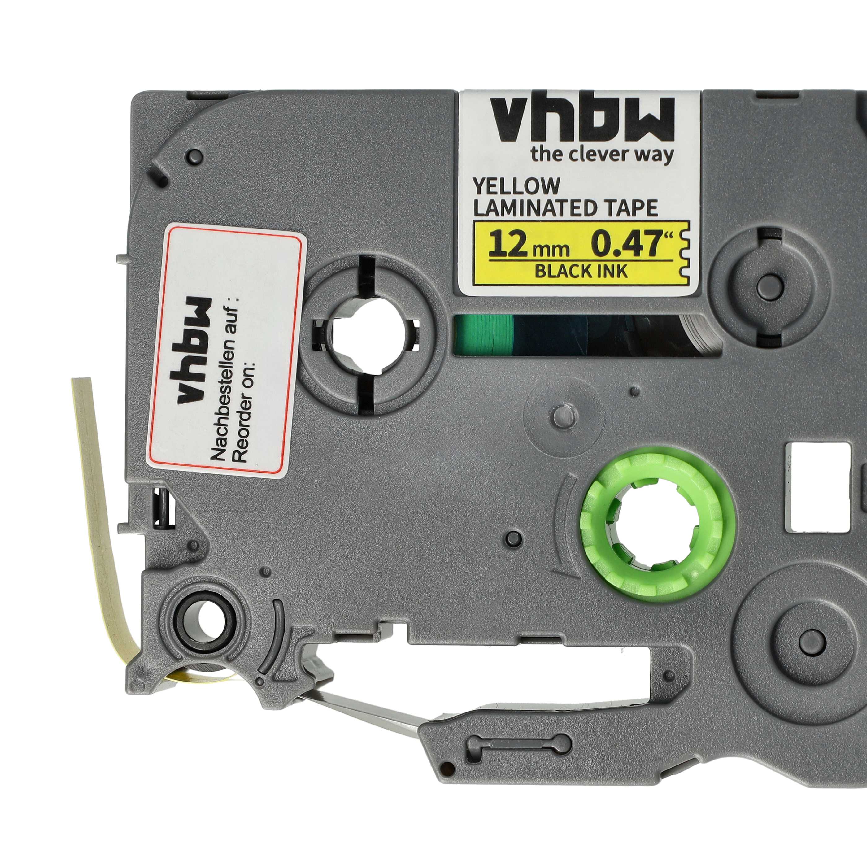 vhbw Cartucho para Brother PT 1100CH, 1080SBT, 1090, 1090BK, 1100 impresora de etiquetas, dispositivo de etiquetado - 12 mm, negro a amarillo