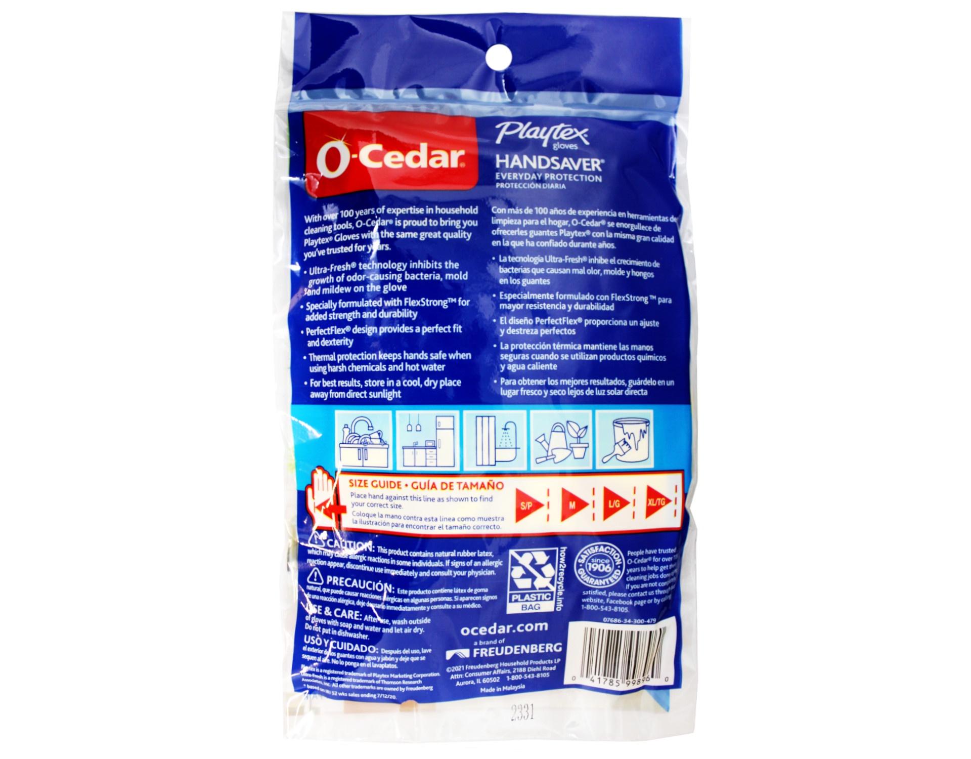 PROTECTS SKIN: Playtex HandSaver Reuseable Rubber Cleaning Gloves provide ultimate protection to your skin from water ODOR-RESISTANT: No more stinky gloves! Ultra-Fresh technology prevents gross. NON-SLIP GRIP: With premium protection, excellent fit and enhanced comfort, the textured palm and fingertips improve grip and mobility when handling wet or greasy objects. DURABLE & REUSABLE: These household cleaning gloves are made with a latex, neoprene, and nitrile formula for strength and durability. Good for multiple uses, you will never be without hand protection! After use, wash outside of gloves with soap and water and let air dry. Do not put in dishwasher. MULTI-PURPOSE GLOVES: Protect your hands and nails while completing any household chore! Playtex rubber gloves are suitable for kitchen, household, bathroom and toilet cleaning, dishwashing, gardening, and more!
