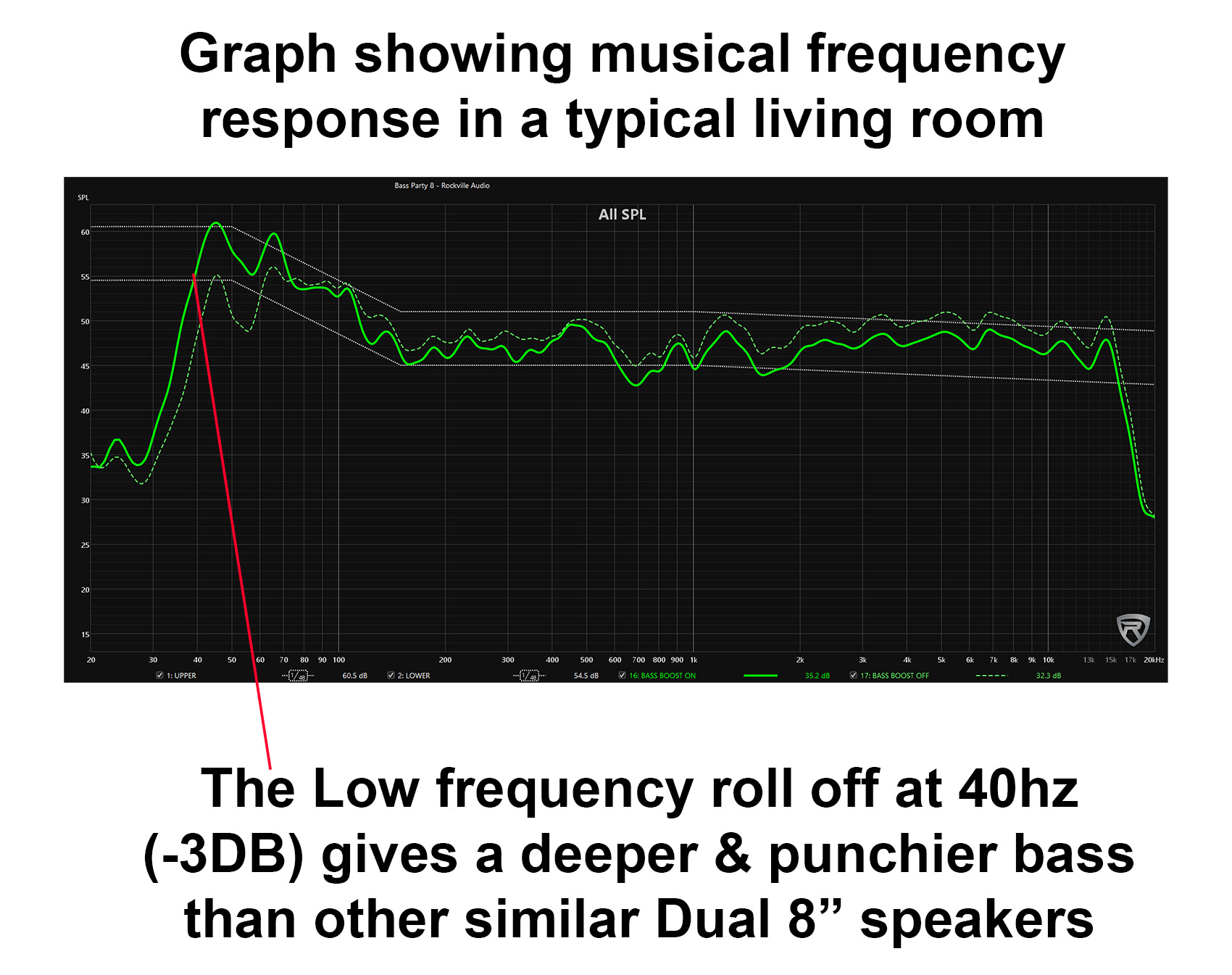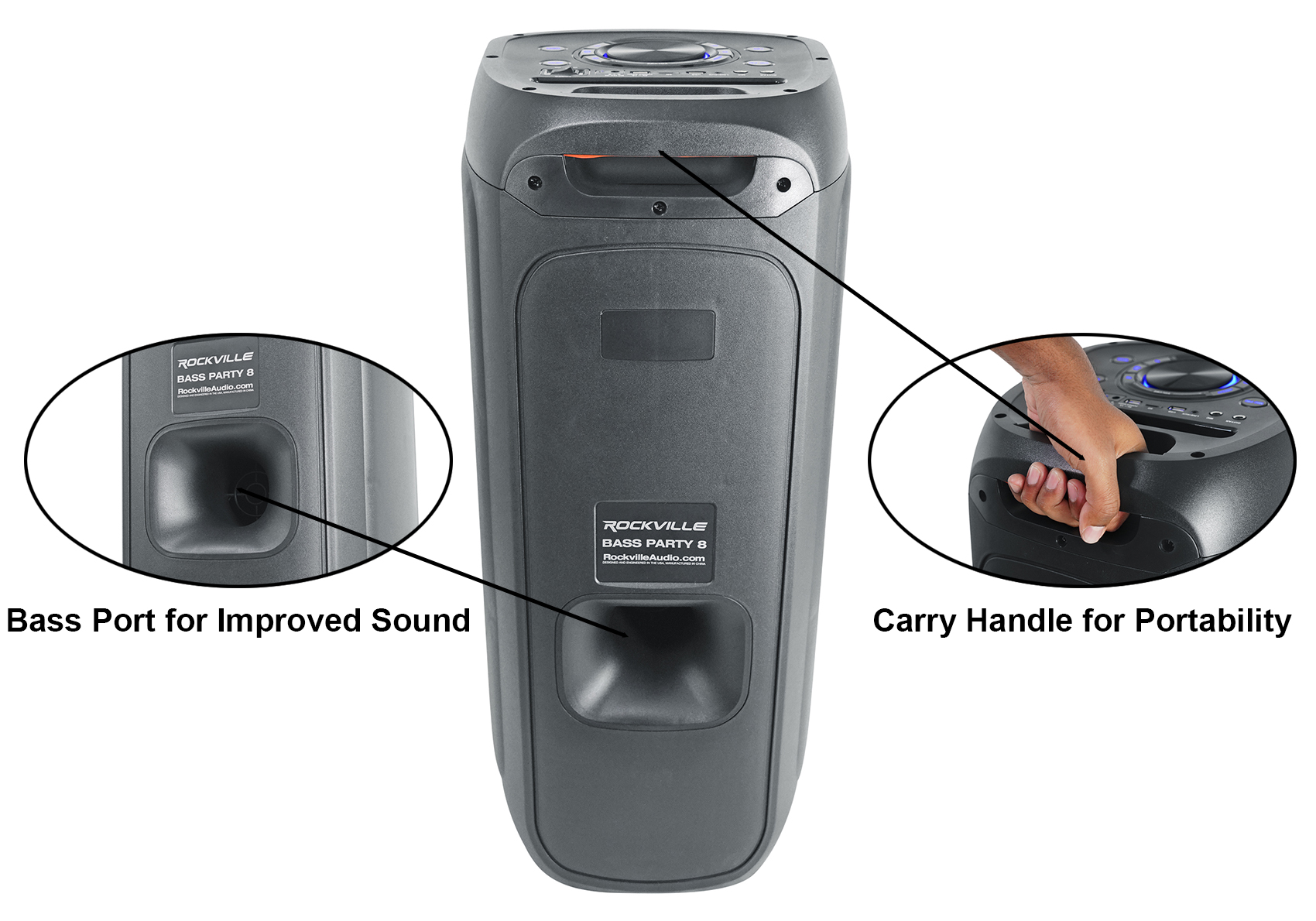 This speaker has incredible bass. It sounds like it has a subwoofer built into the speaker. It sounds that way because it does. This is a 3 way speaker box with a 8" subwoofer, a 8" midrange, and a 1.5" tweeter for high frequencies. This is one of the loudest party speakers on the market. The speaker uses digital sound processing technology and it is tuned by Rockville USA to sound balanced and clear with that bass that we know you want.