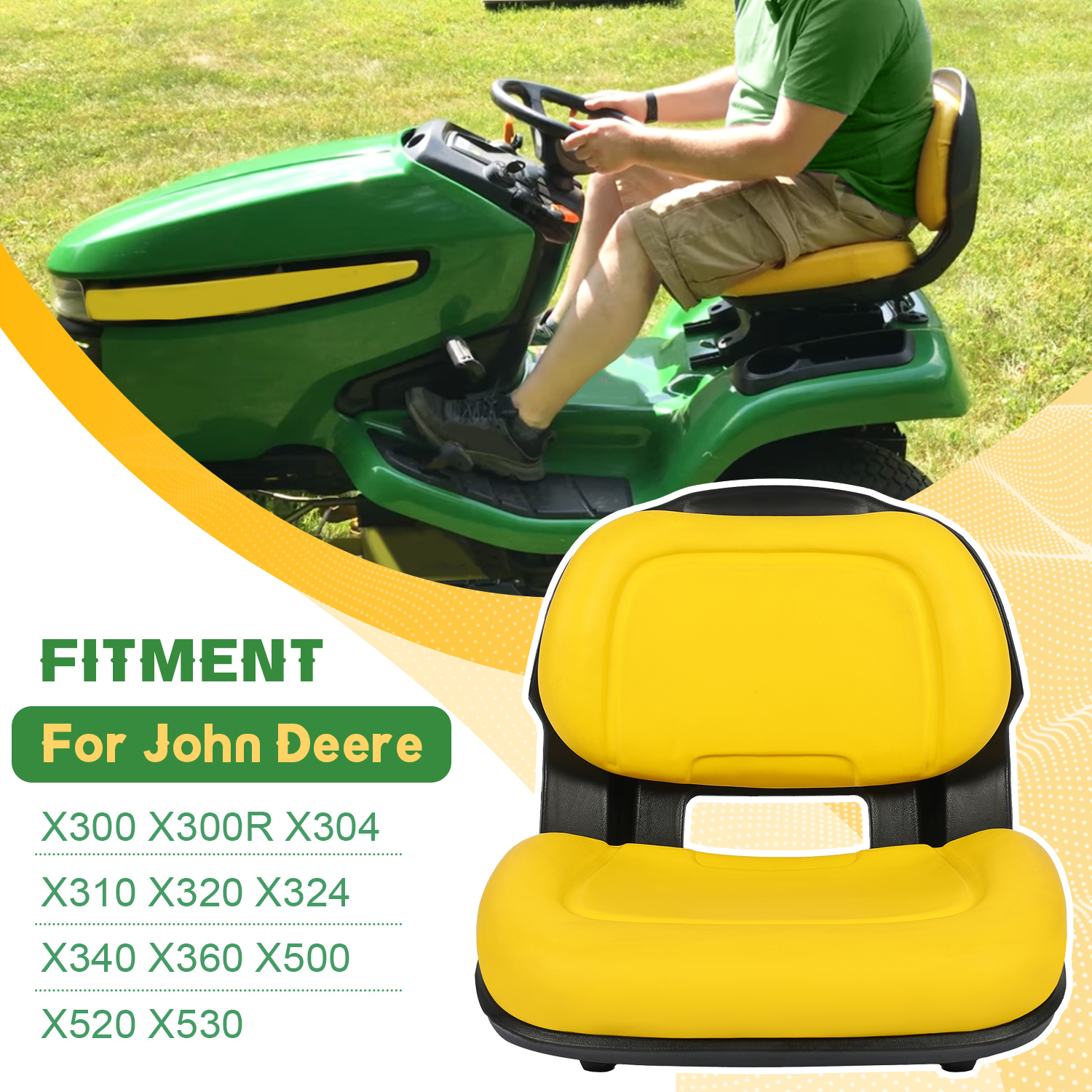 Yellow Plastic Seat For John Deere X500 X520 X530 X540 X570 X580 #AM136044