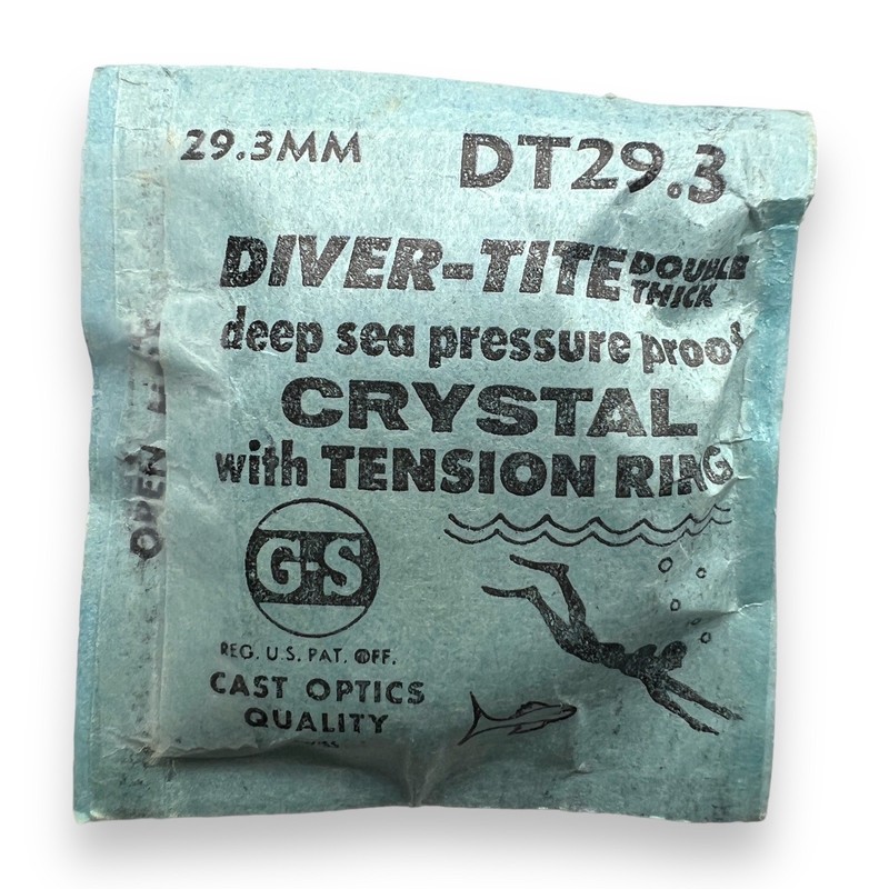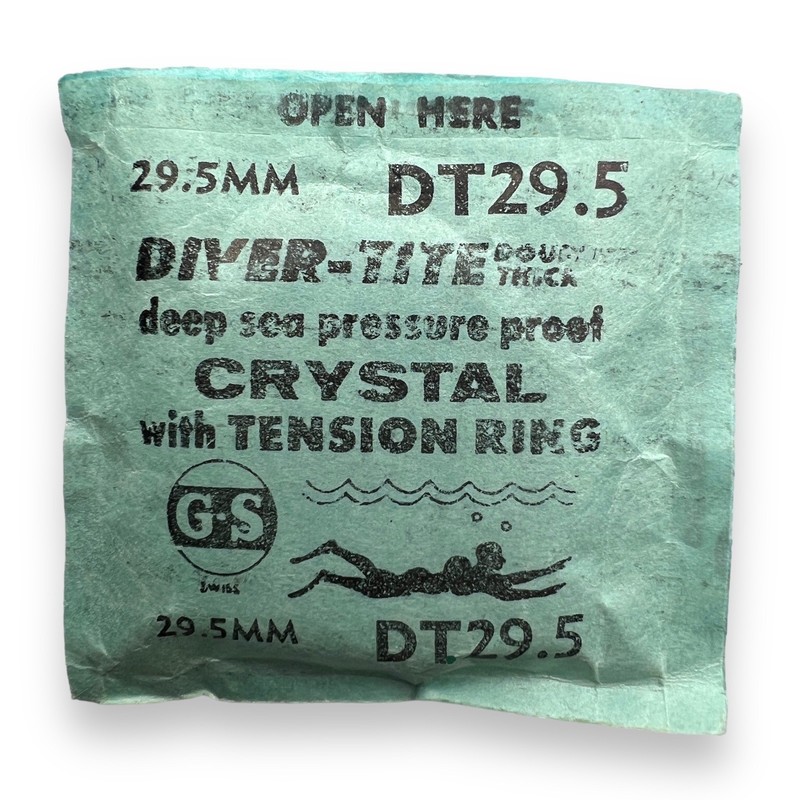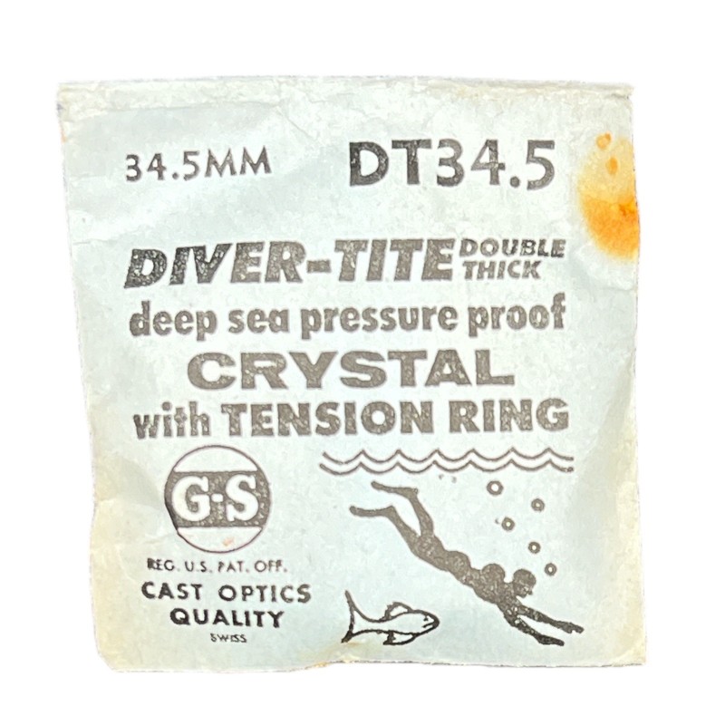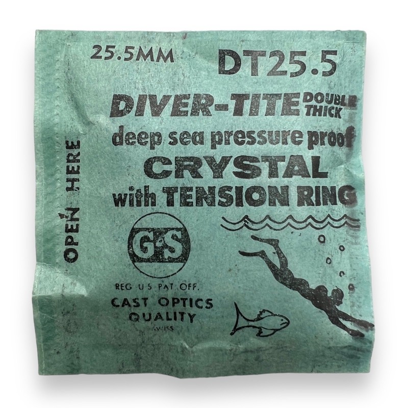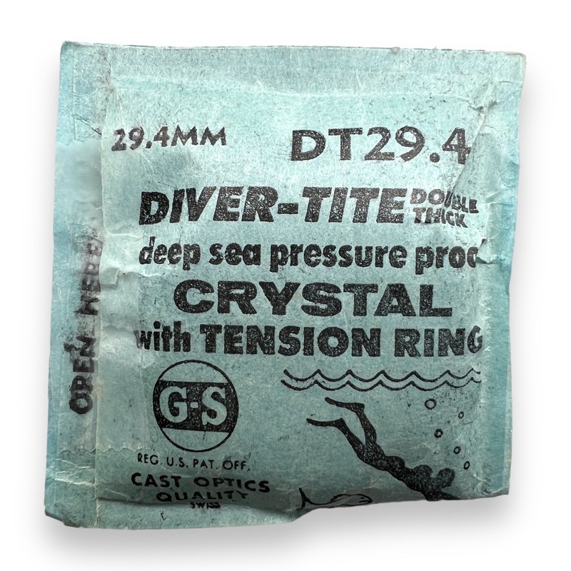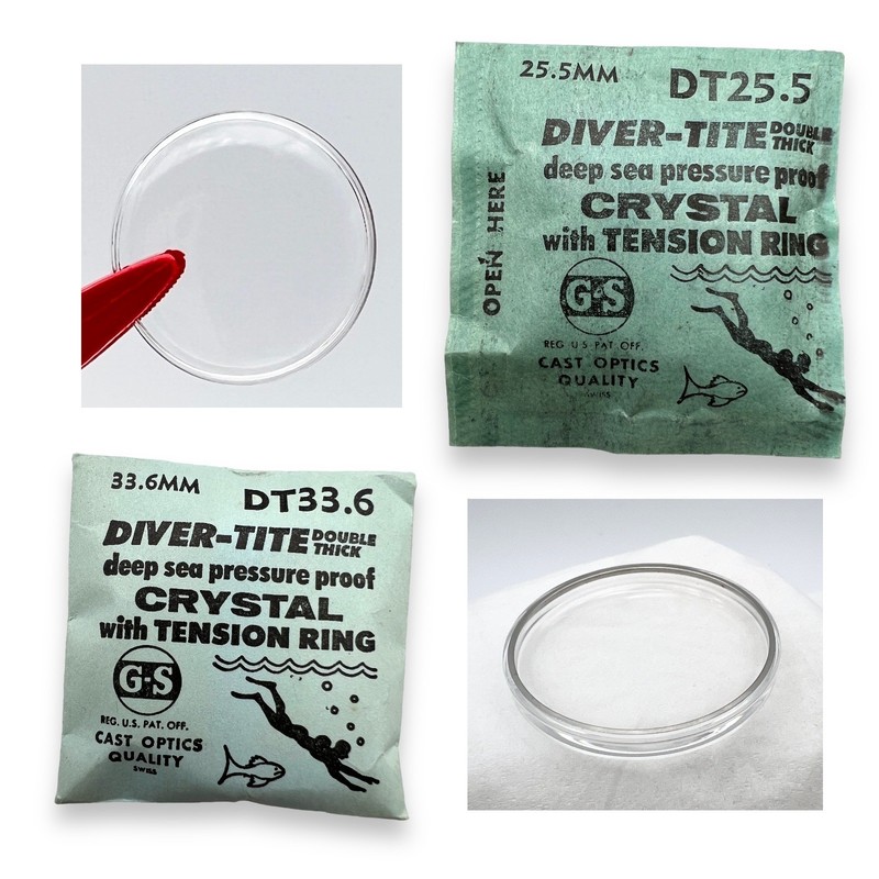 Muti-thick waterproof tension ring crystal made especially for divers sport watches. The white tension ring in an integral part of the crystal. Designed for divers watches from the 1940s through 1970s.