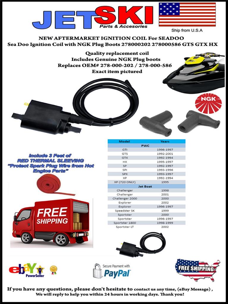 SeaDoo Ignition Coil 278000202 278000586 GTI GTS GTX HX SP SPI SPX Sea Doo