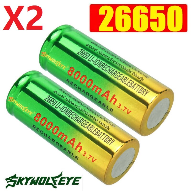 2pcs Skywolfeye Battery 26650 3.7V Li-ion Rechargeable Cell For Flashlight LOT