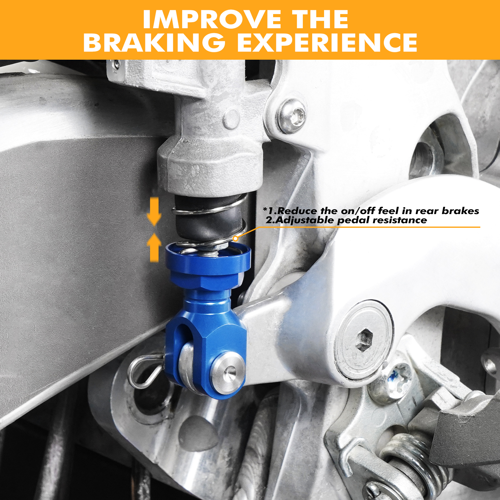 【 Improve braking experience 】 Reduce the on/off feel in rear brakes by placing the spring in compression instead of tension. Adjust the spring pre-load to change pedal resistance