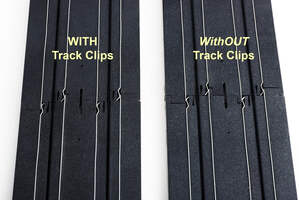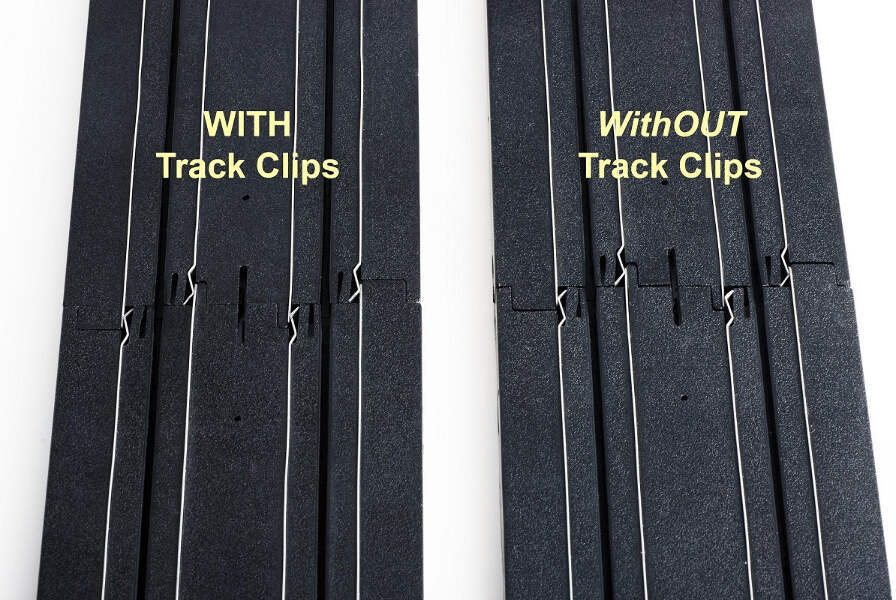 Sold in packs of 25 and 100, make sure to use two clips on each track junction. Simply press into place underneath your track with your thumb. Remove just as easily with a small screwdriver. WARNING: Not for use by children under the age of 12. Wear Protective Safety Glasses when using clips.