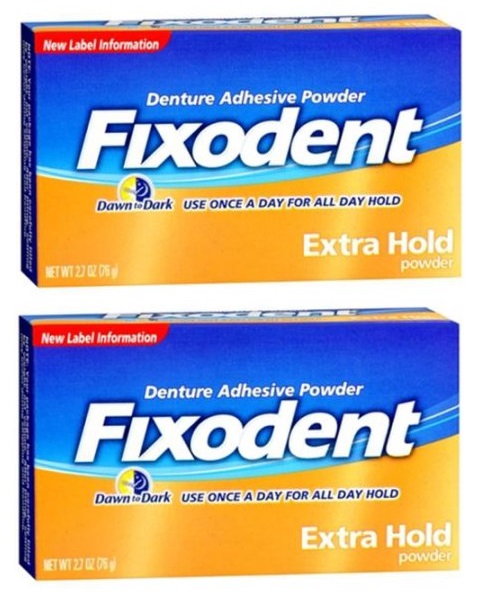 2 Pack Fixodent Denture Adhesive Powder Extra Hold 2.70Oz Each