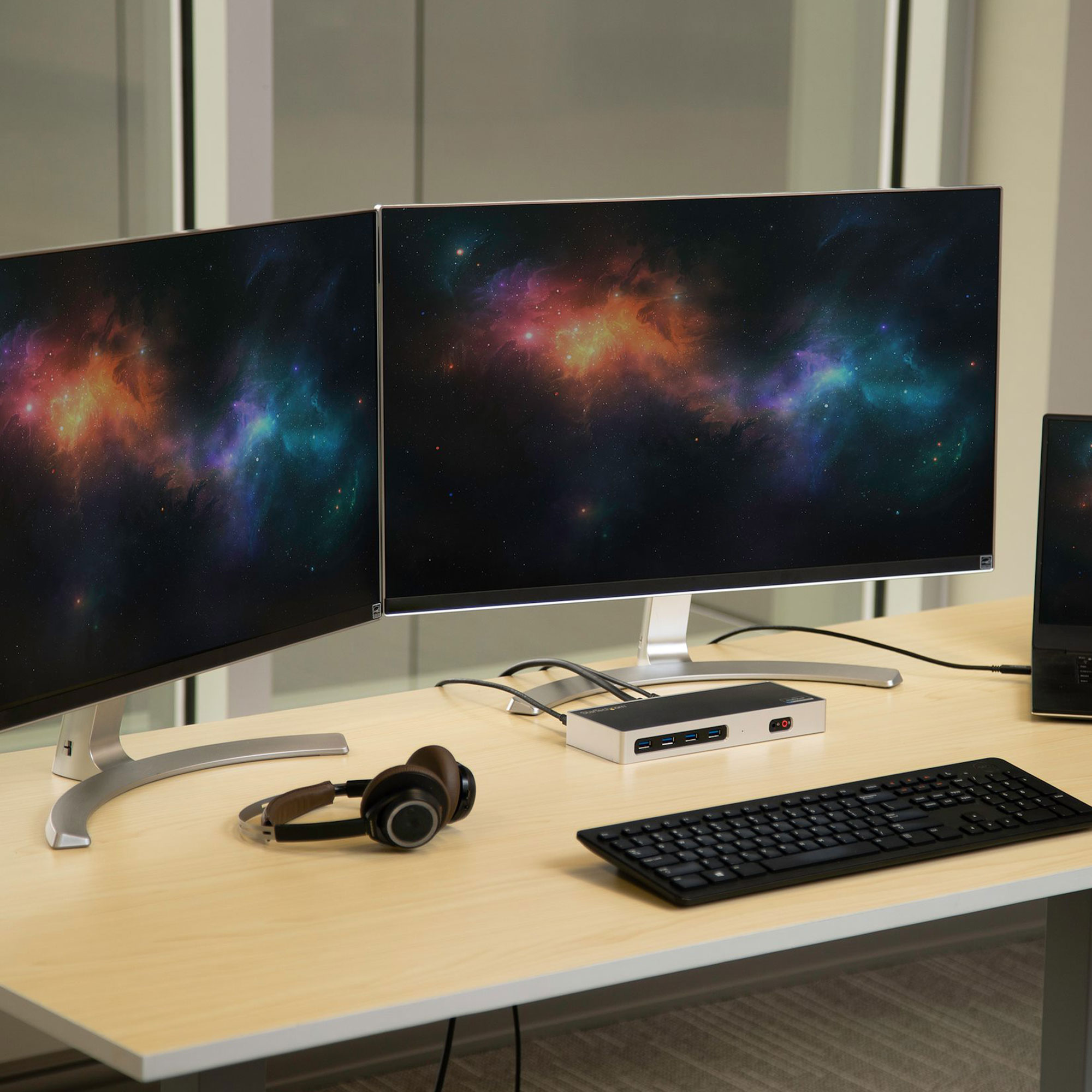 Ideal for highly detailed graphics applications, this dual-4K 60Hz docking station enhances your productivity?by expanding the display capabilities of your laptop across 2 Ultra HD 4K monitors.?The laptop docking station works with DisplayLink?to support high-resolution monitors, enabling 2 full 4K 60Hz displays from a single USB connection.