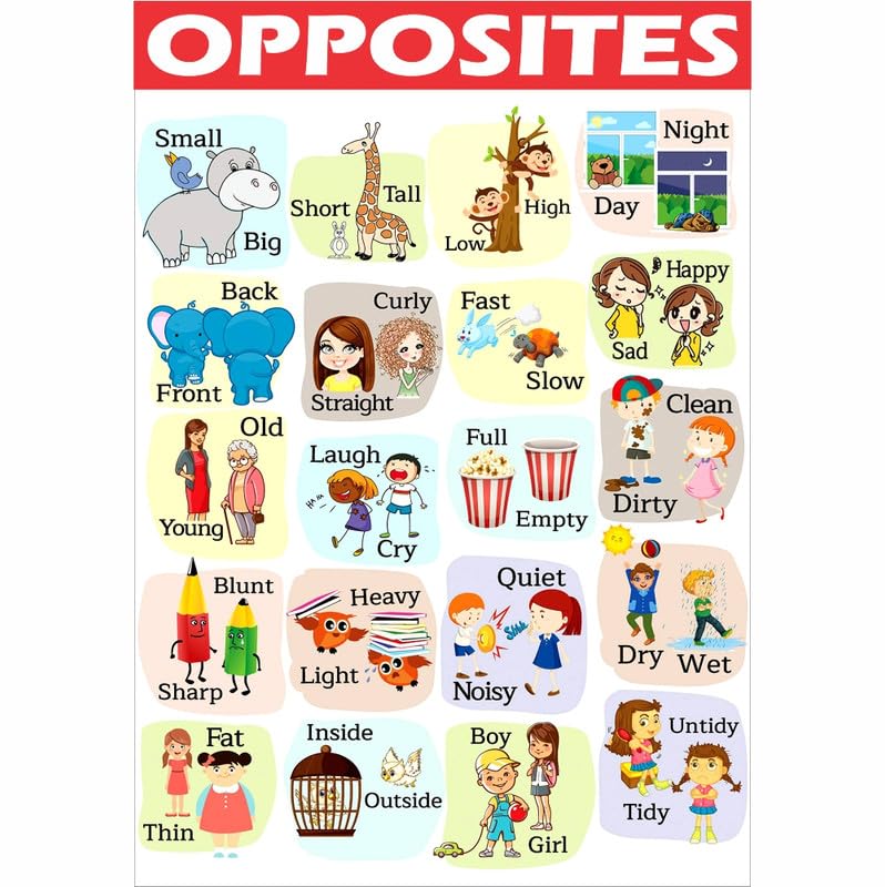 Opposites Chart For Kids Poster for Home Office and Student Room Wall | Aesthetic Poster | Wall Decor OPPSTSCHRT (18X12 inch)