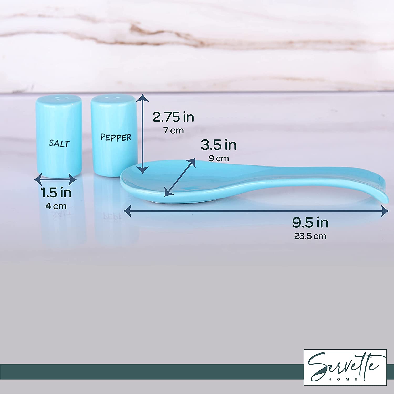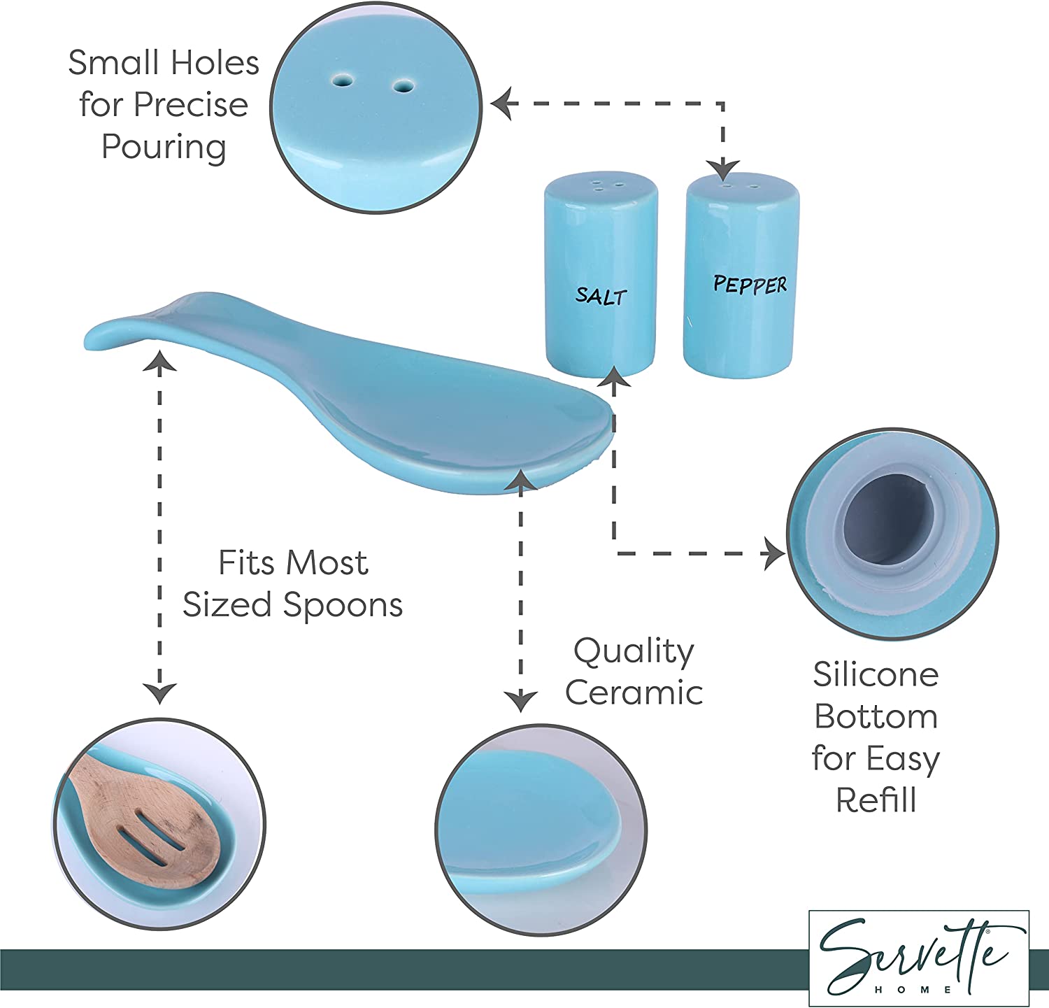 Looking for that certain color to bring that pop into your kitchen? Matching spoon rest and salt and pepper shakers in a minimalist style. Stack them up for easy storage.Beautiful assortments of colors. Will add the splash of color to any kitchen!