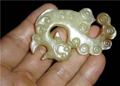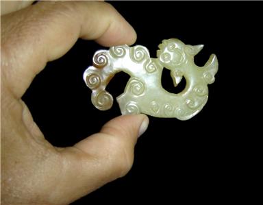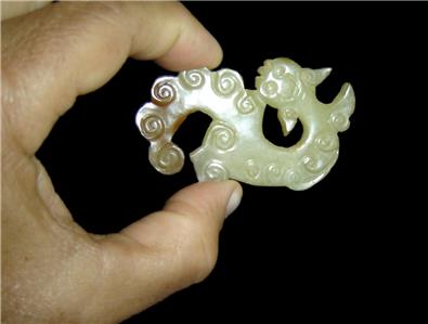 We are delighted to offering for your private collection a Wonderful antique Chinese (Probably from the Han Dynasty) carved White Heitian Jade figurine of a Dragon or a Mythological Beast pendant or amulet,soft hand polished finish with beautiful darker inclusions at the tail of the Beast.