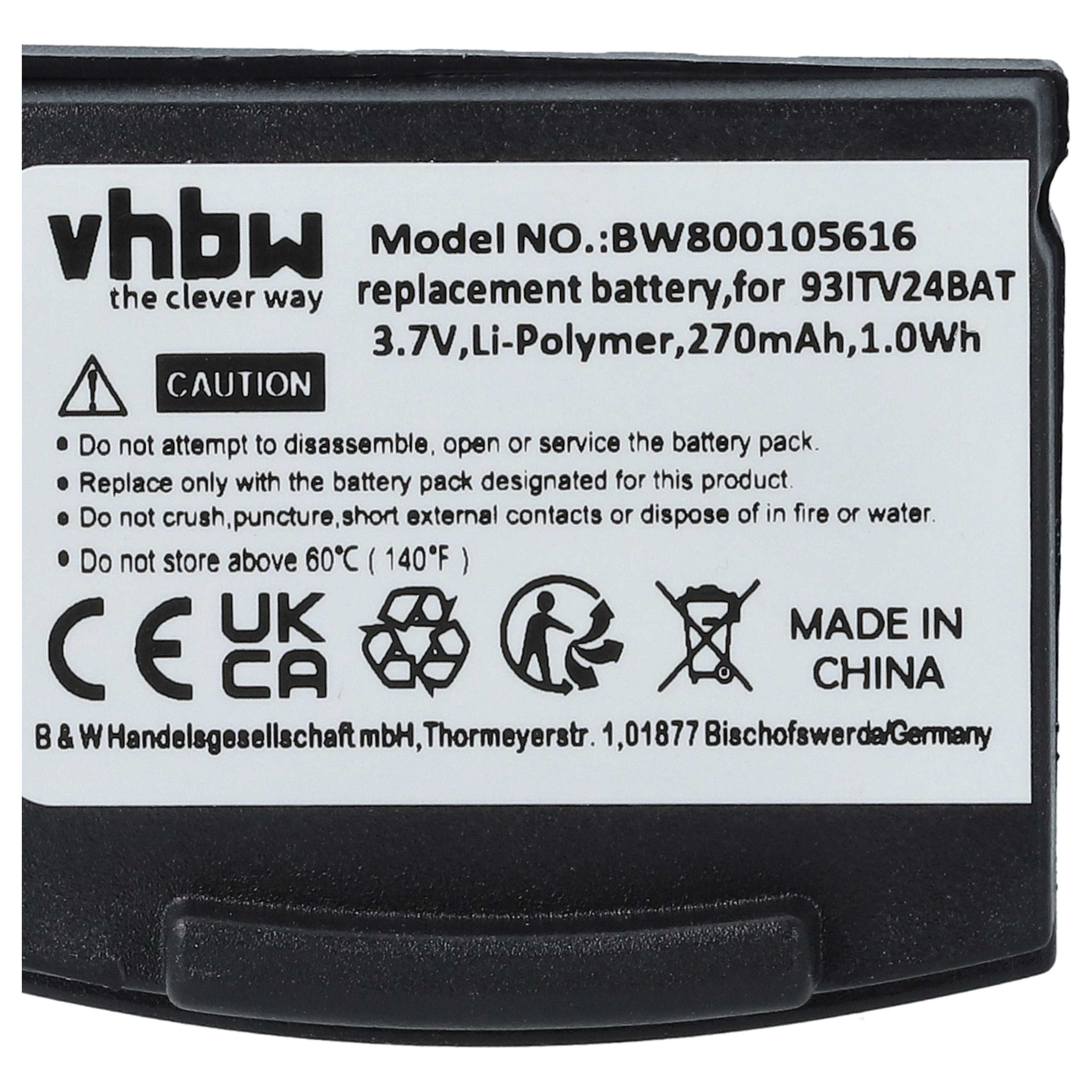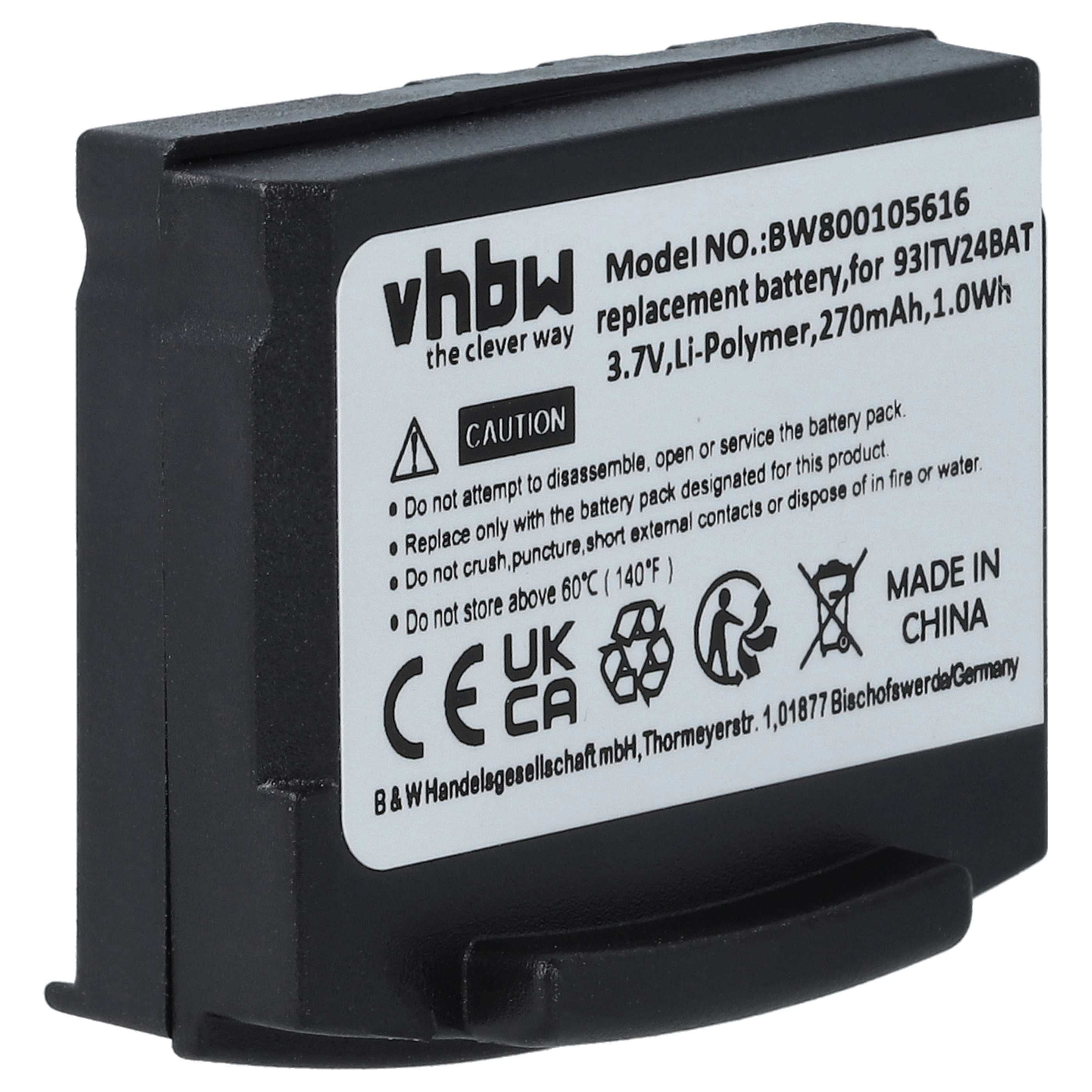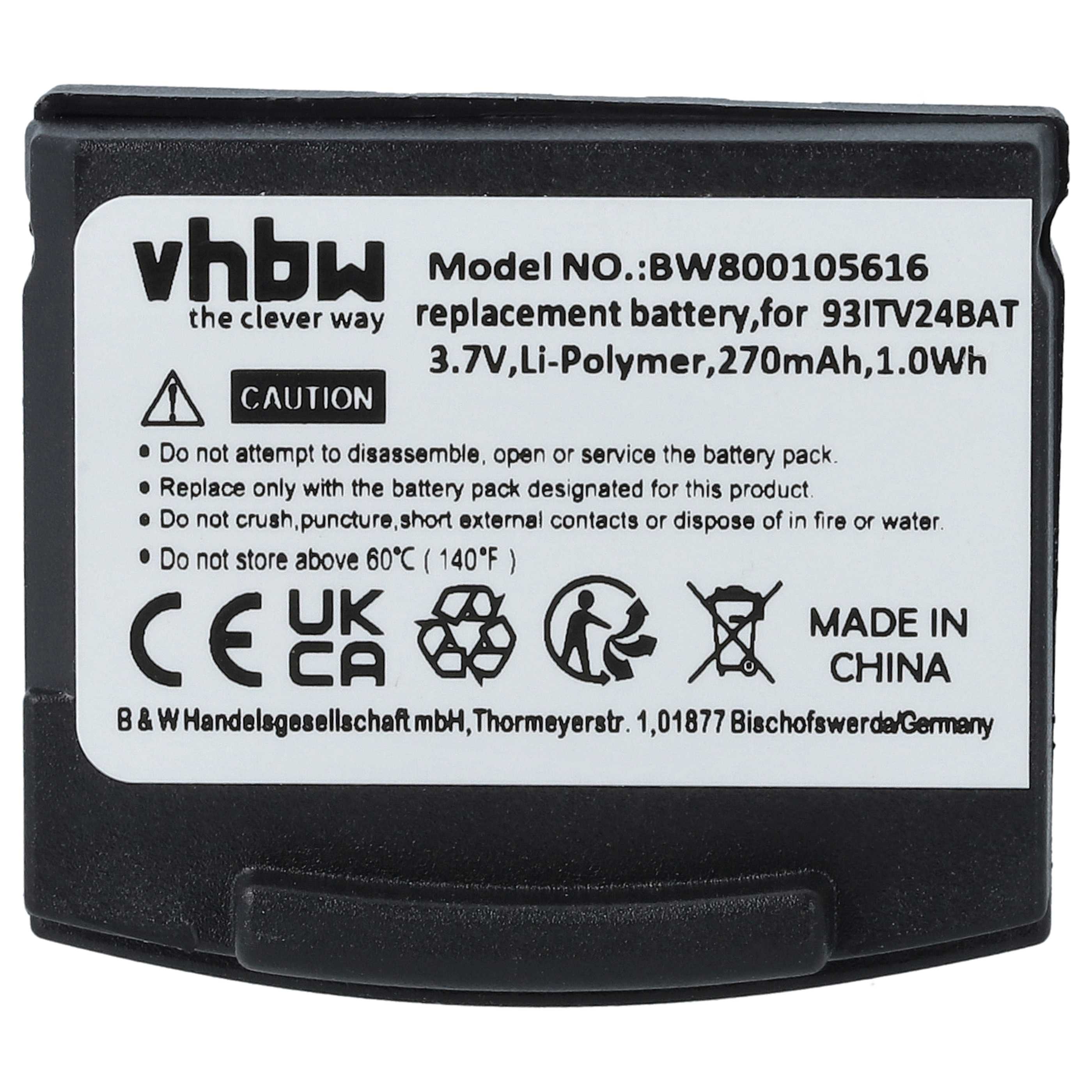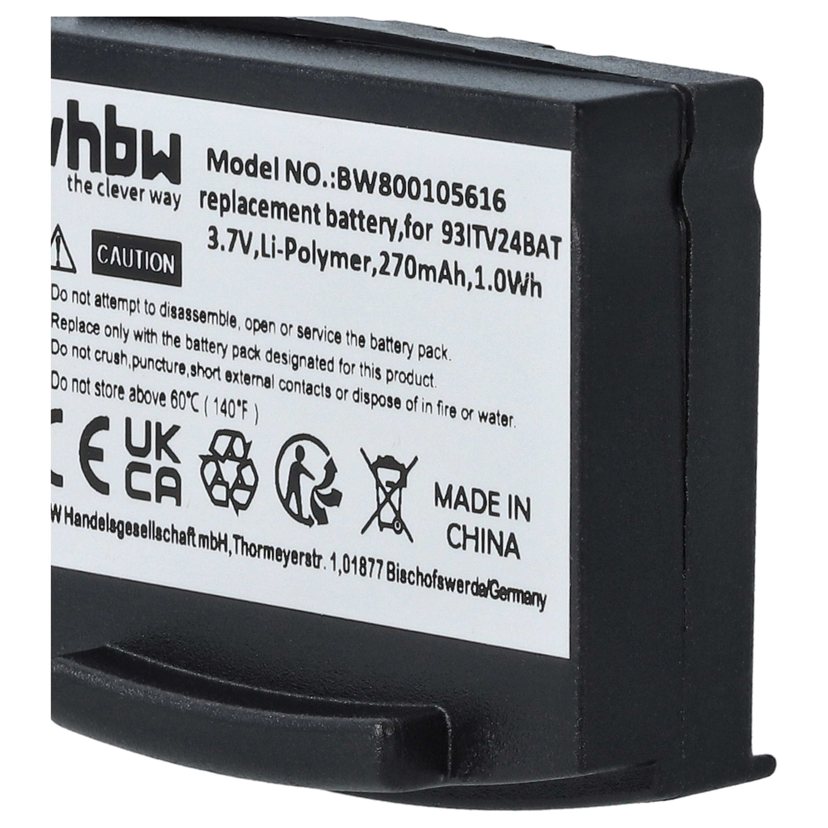 vhbw Potente batería de repuesto para Amplicomms TV2410, TV2510, TV2400, TV2500 auriculares inalámbricos (Li-poli, 270 mAh, 3,7 V)
