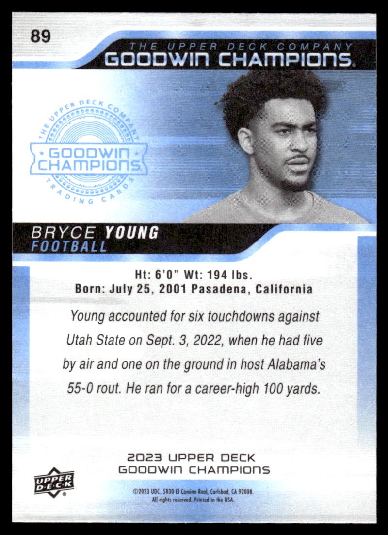 | Bryce Young Rookie 2023 Upper Deck Goodwin Champions #89 Carolina Panthers |