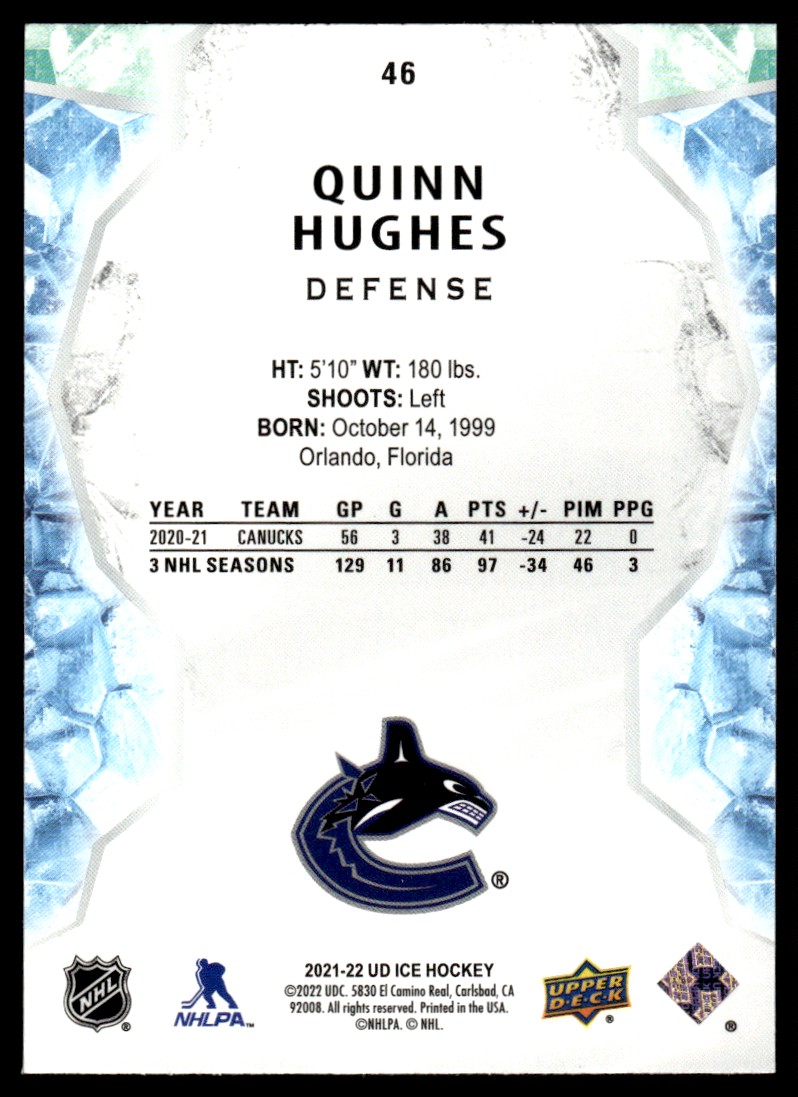 | Quinn Hughes 2021-22 Upper Deck Ice Orange #46 Vancouver Canucks |