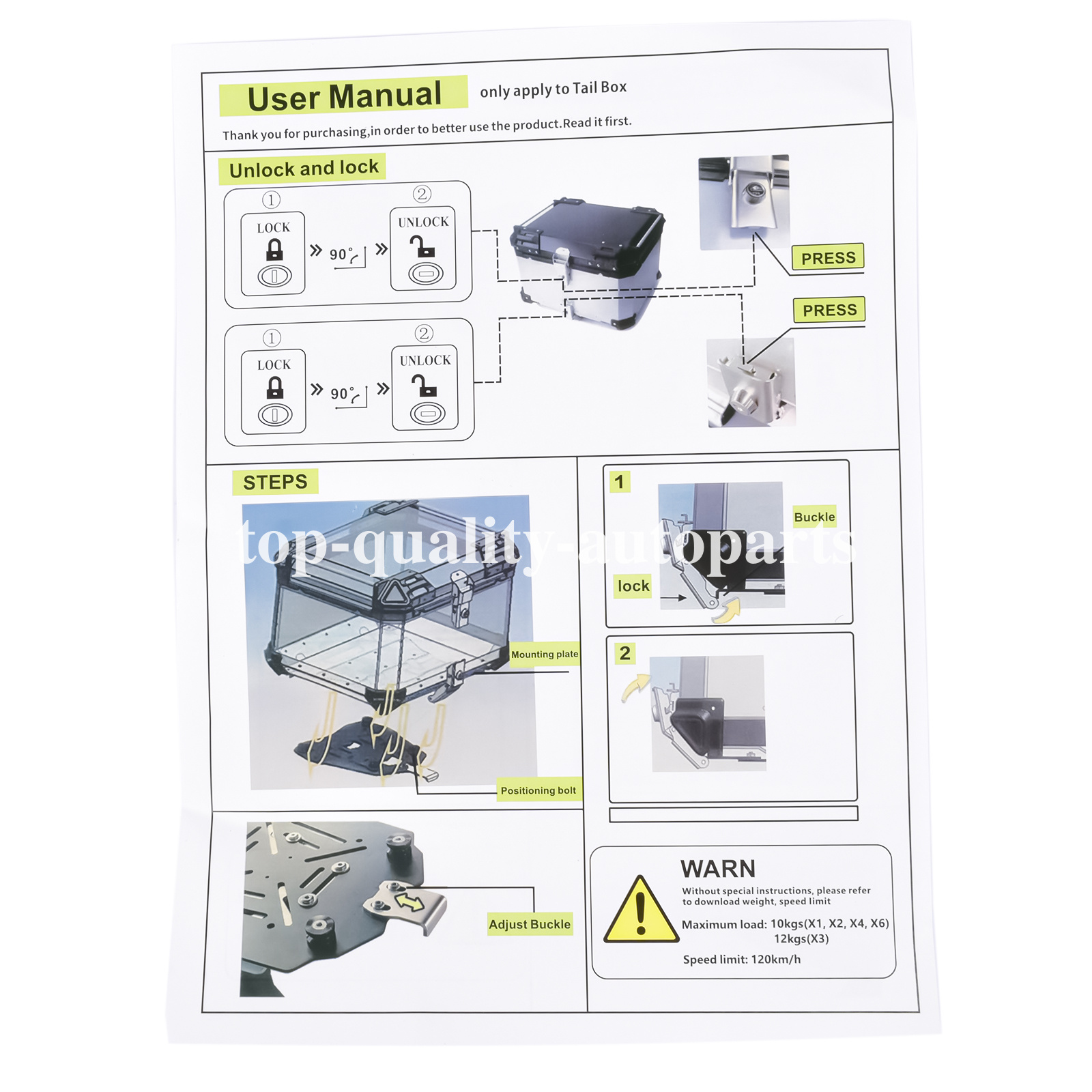 2. Die Garantie gilt nur für die Kosten des Artikels. Wir sind nicht verantwortlich für Installations- oder andere Gebühren wie Arbeitskosten, Abschleppkosten, zusätzliche Reparaturkosten oder andere damit verbundene Kosten.