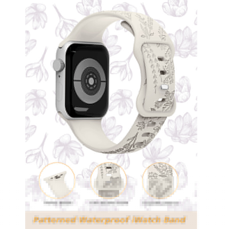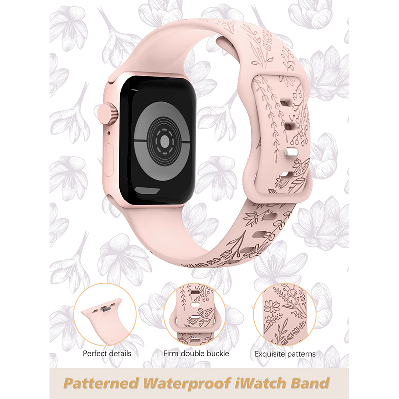 Our flower laser pattern engraved silicone for iwatch bands compatible with Apple Watch 38mm 40mm 41mm 42mm 44mm 45mm 49mm, suitable for Apple Watch iWatch Sreis 9, Series Ultra 2,Series 8, Series Ultra,Series 7, Series 6, Series 5, Series 4, Series 3, Series 2, Series 1, SE .