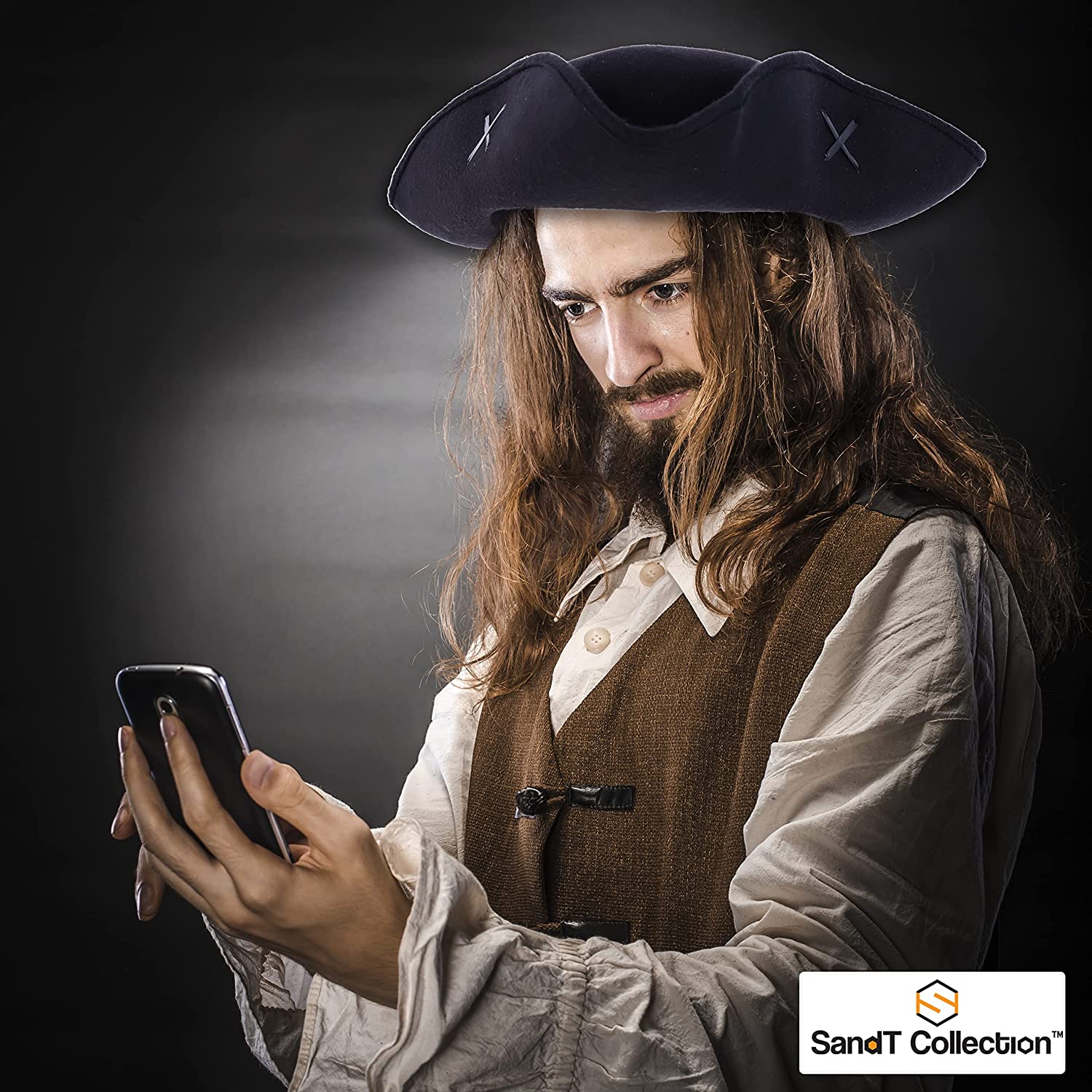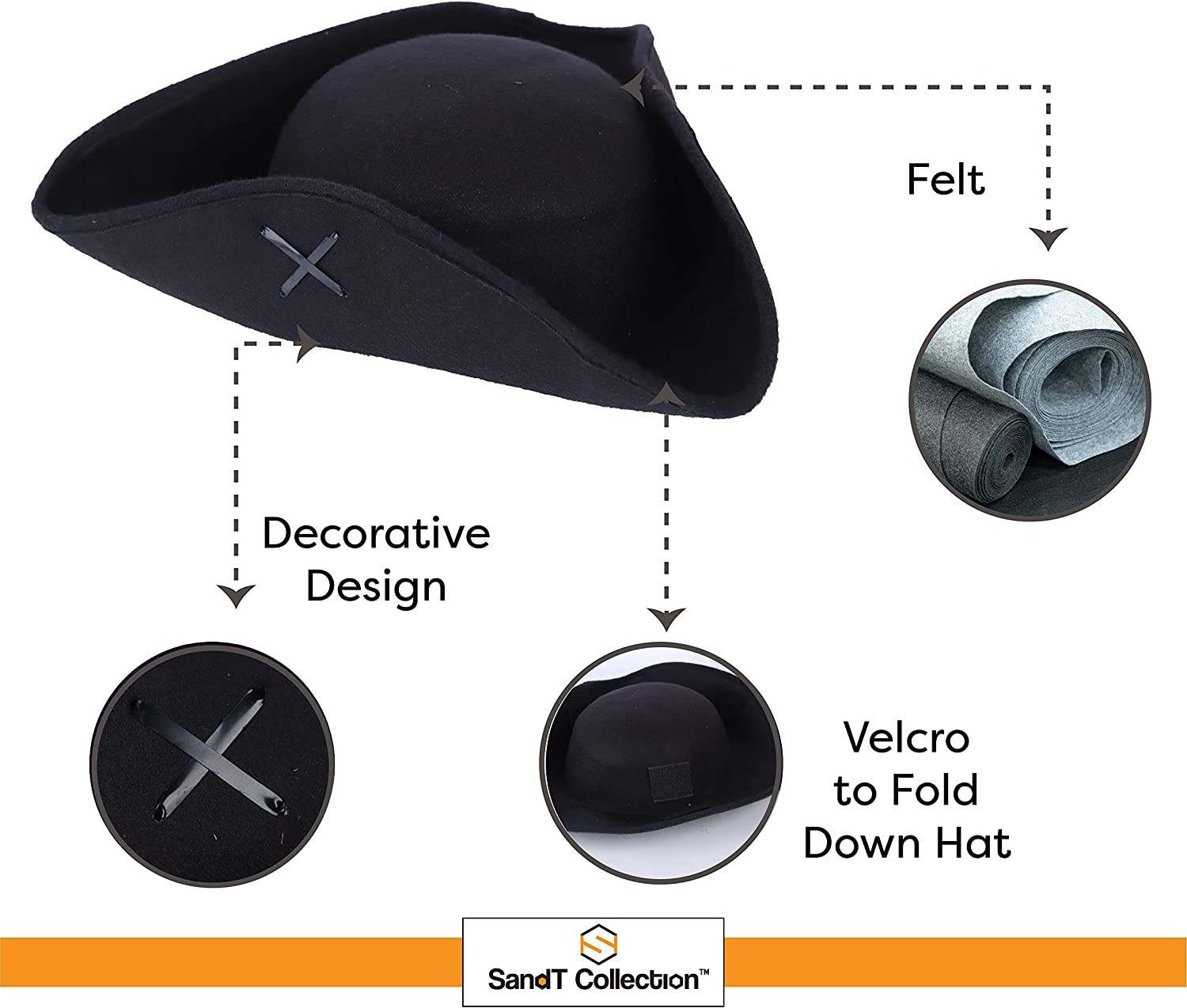 Whether dressing up for the holidays, or just for fun these tricorn costume accessories will keep you sailing for hours with your family and friends. The quality and durable materials and decorative design will complete the look and add a real feel to the fun. Decorate your pirate theme party with pirate accessories. Transform you and your guests into a pirate in the Caribbean, a captain at sea, and so much more! Ahoy Mateo! Perfect accessory for your school performances, Pirate themed plays and movies, Cosplay, Halloween, or any other Dress Up Event! These pirate accessories are the perfect choice for family photo shoots and themed dress up parties.