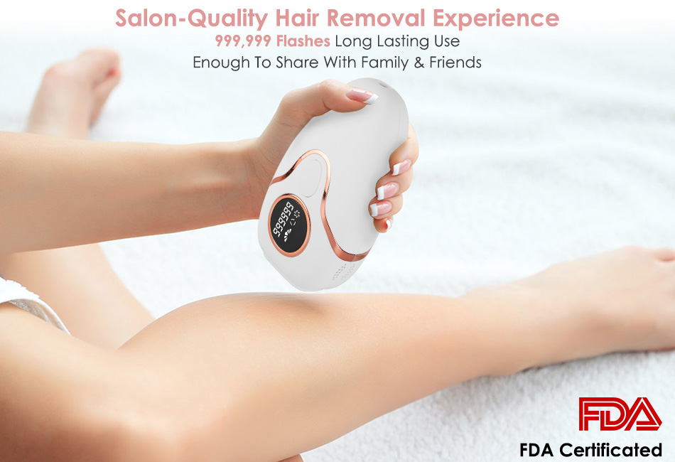 - Long Lasting 999,999 Flashes:Equipped with upgraded 999,999 flashes,this ice-cooling hair removal provides long lasting uses,this ice-cooling hair removal device offers long-lasting use,making it suitable for sharing with the entire family or friends. The significant and visible hair reduction result can be shown off in 3 weeks. Summer is coming,our economical laser hair removal device is sure to bring you a confident and hair-free beach vacation.