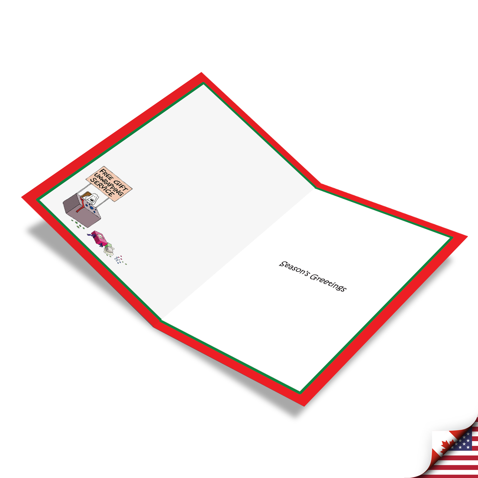 INSIDE GREETING: "Season's Greetings" COVER - Free Gift Unwrapping Service
