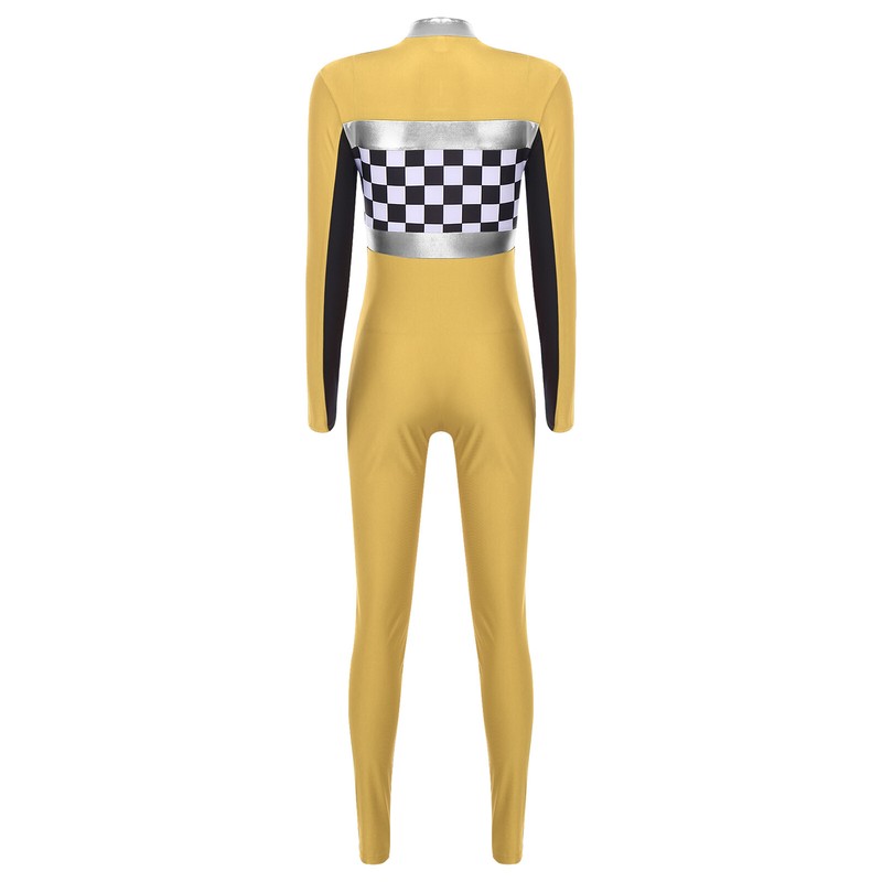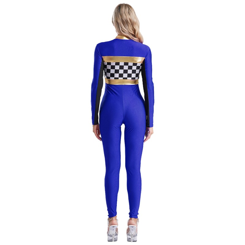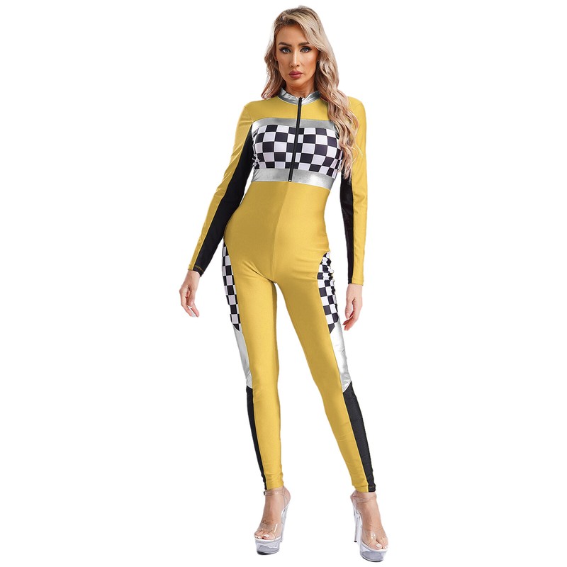 Slim-fit romper highlights your hourglass figure. Dressing up you as a cool off-road driver, speed racer, racing queen, cheerleading for racing.