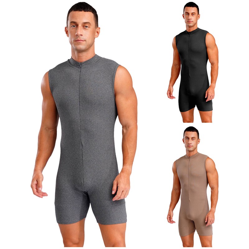 Bodysuit is designed with short sleeve, round neckline, open crotch.