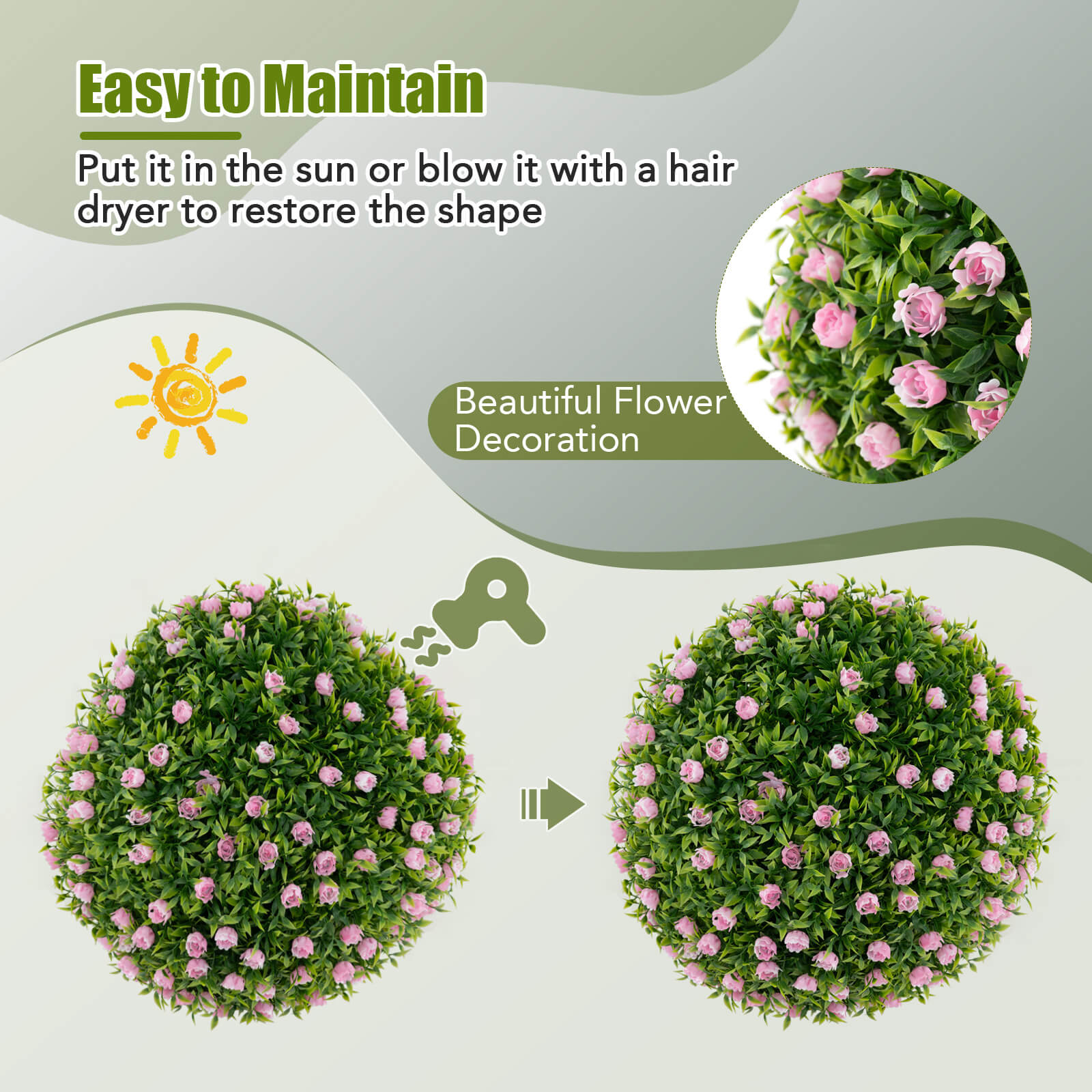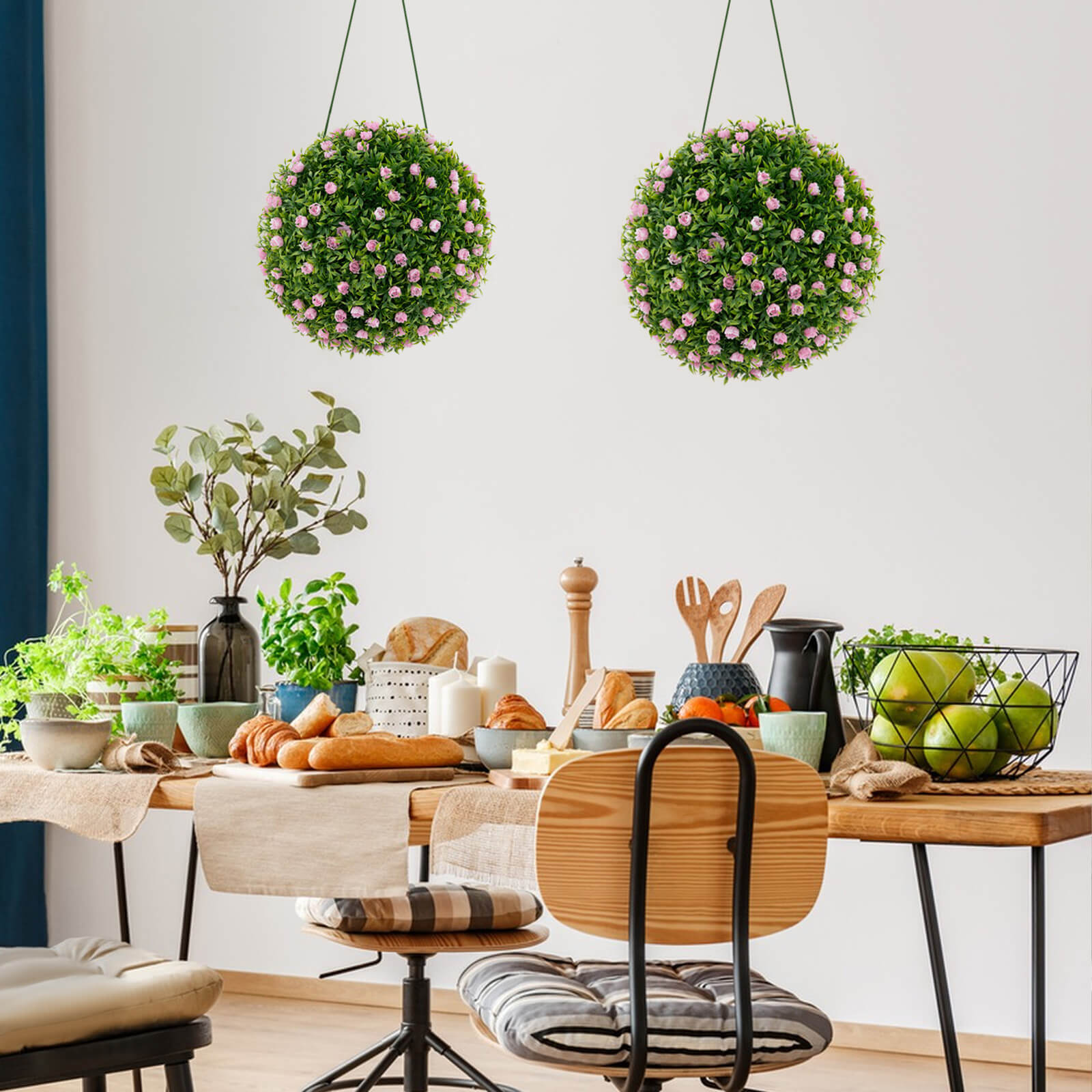 Are you looking for an effortless way to bring a touch of nature into your space? Our realistic artificial plant ball offers intricately designed gradient leaves and charming pink rose decorations, creating a natural ambiance. Crafted from high-quality PE material, these fade-resistant plant balls are perfect for long time use. With minimal upkeep required and easy installation using provided clips, these lifelike artificial plant balls are a simple yet elegant solution to enhance any room. Whether you hang them for decoration, display them in a vase for an elegant touch, or use them to enhance various settings like your home, office, shop, or outdoor space, they effortlessly elevate any environment.