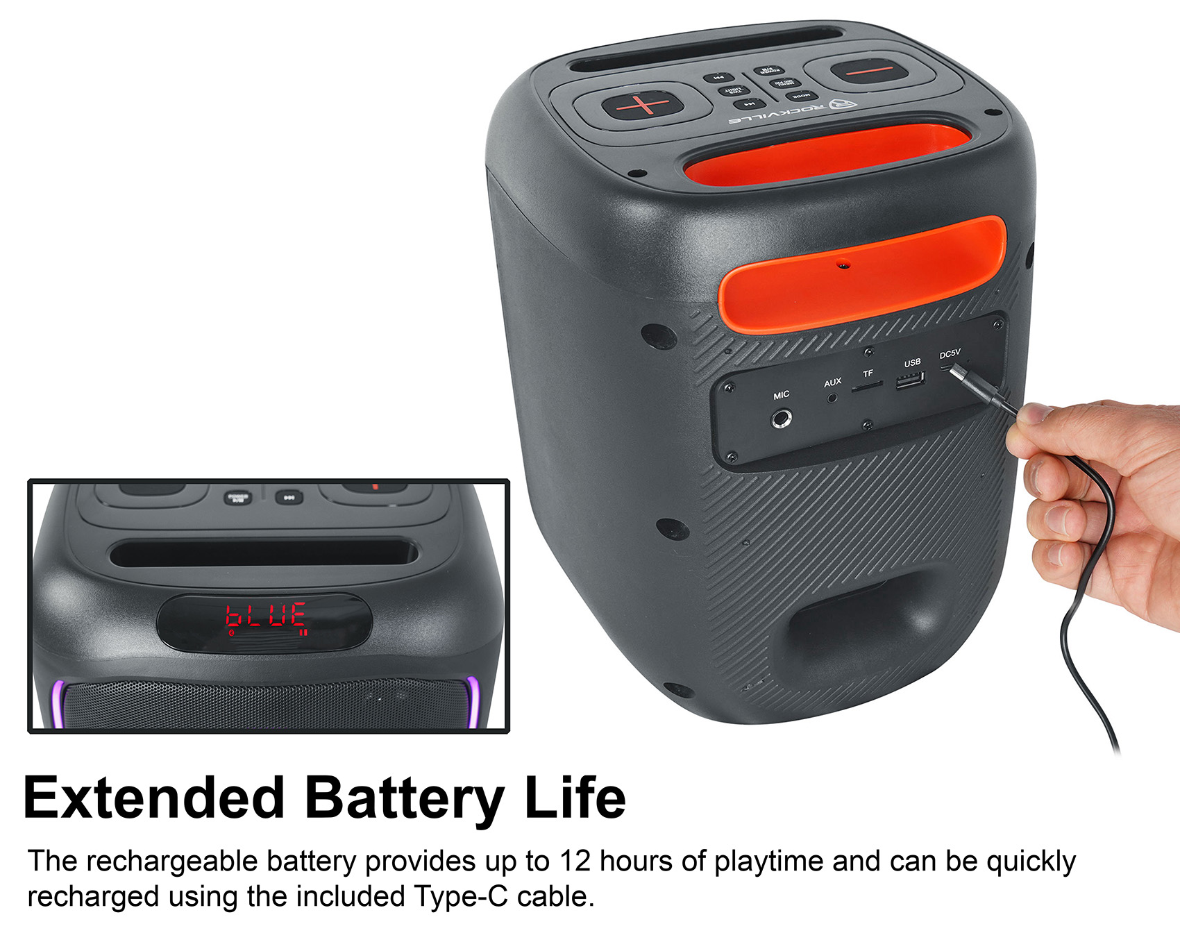 Enjoy up to 12 hours of playtime with the built-in rechargeable battery. The included Type-C charging cable makes charging quick and easy.