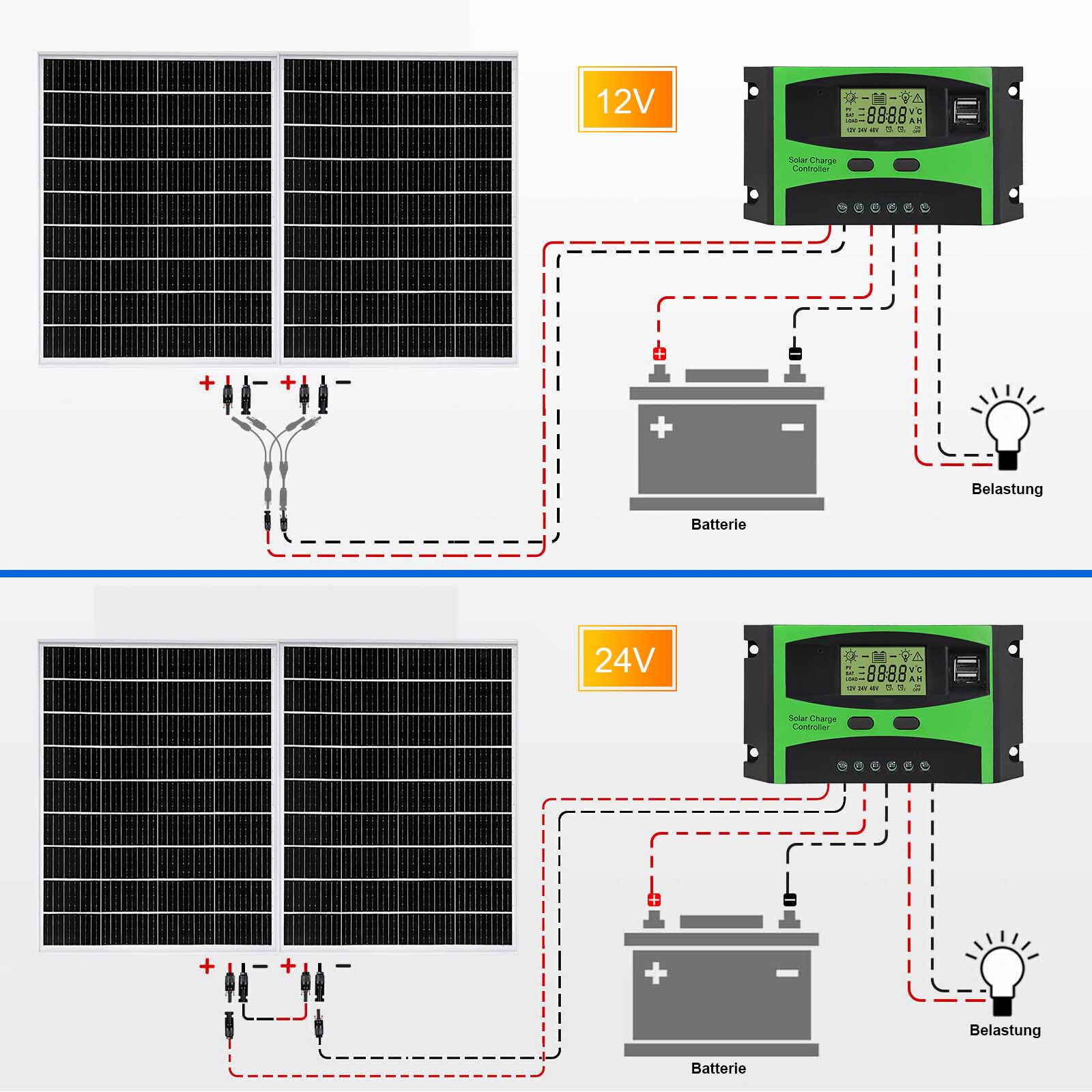 Ladespannung: 12V(Parallel) / 24V(Reihenschaltung),(Abhängig davon, wie Ihre Leitung angeschlossen ist)