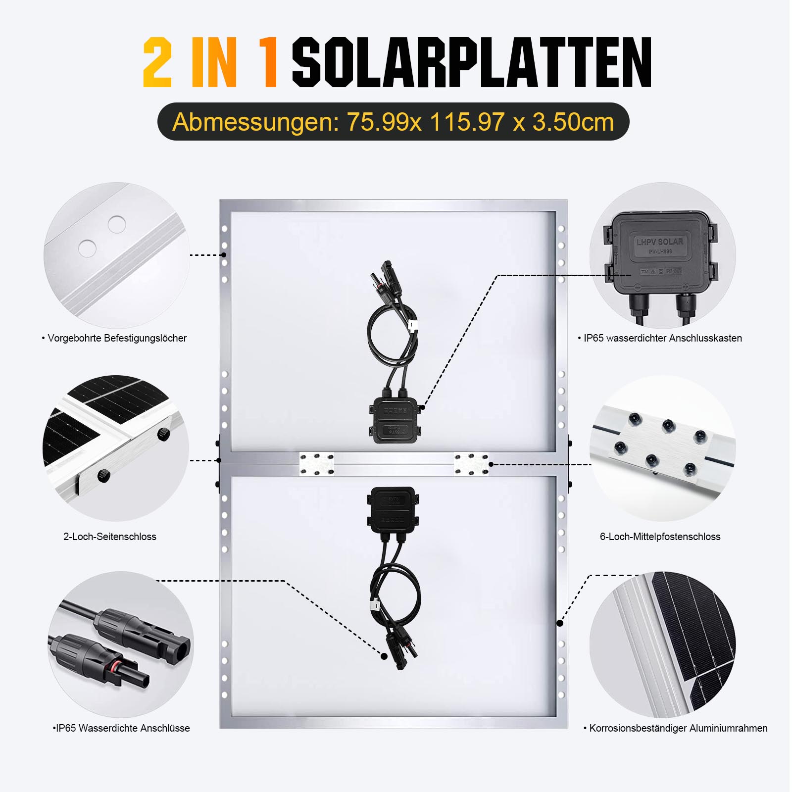 2. das weltweit führende innovative Design, im Vergleich zu den Markt 400W 36V Solarmodule, unsere Solarmodule haben sehr starke Flexibilität und Praktikabilität in Bezug auf mehrere Panel-Installation, nach Ihrem Ladegerät auf die Spannungsanforderungen für DIY-Kombination 18V / 36V / 54V / 72V oder sogar größere Spannung können Ihre unterschiedlichen Bedürfnisse Serie oder parallele Installation erfüllen.