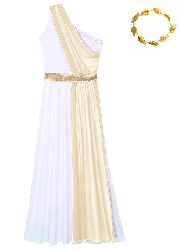 Ideal costume for cosplay parties to make you attractive; the tunic dress with artificial leaf garland headwear dresses up you as a Greek beauty.