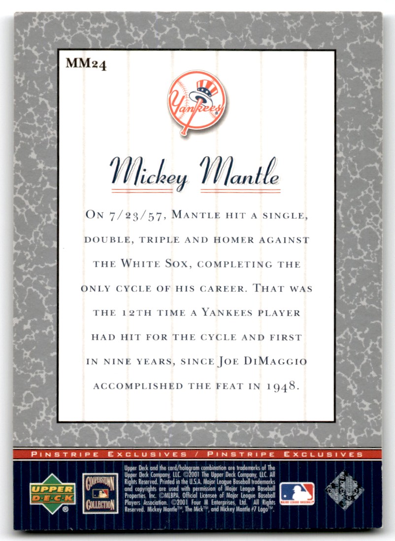 2001 UPPER DECK PINSTRIPE EXCLUSIVES MANTLE MICKEY MANTLE NEW YORK YANKEES #MM24